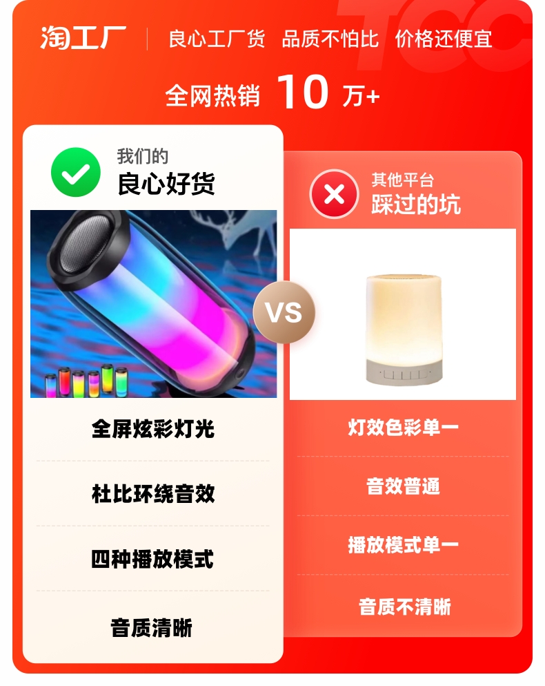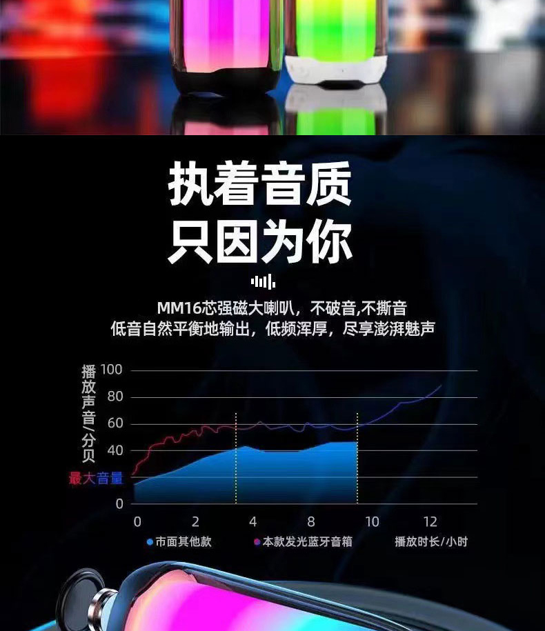 炫光现货七彩灯光声音蓝牙音箱震撼派对露营不能少