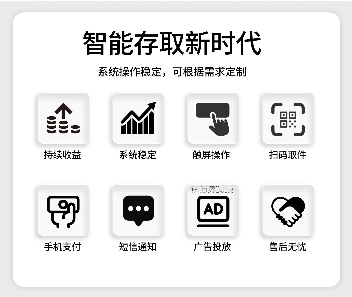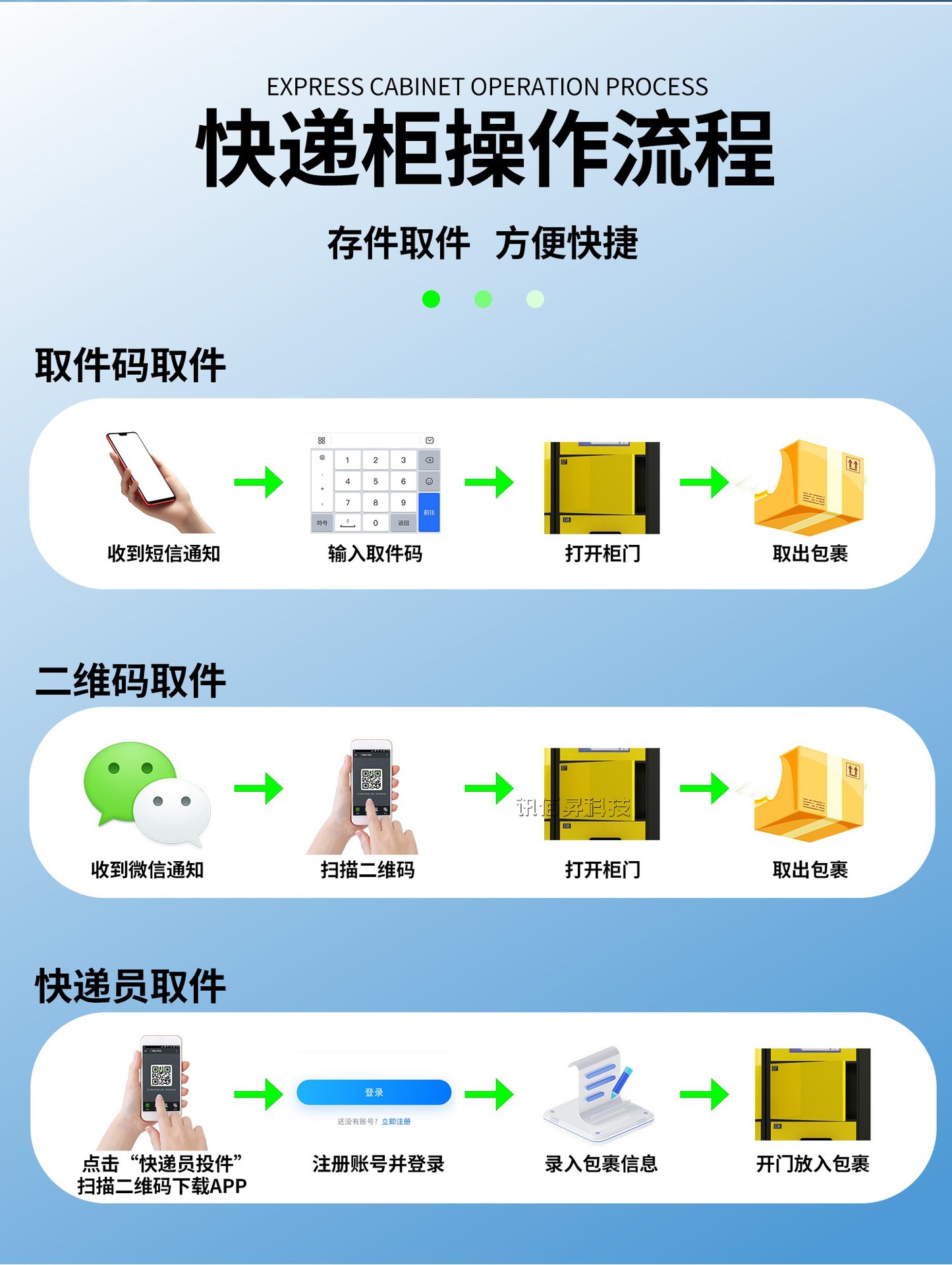 讯佰昇驿站快递自提柜、联网智能快递柜、小区快递柜、智能快递寄存柜、智能储物柜、智能租赁柜 酒吧俱乐部联网存包柜、车站微信联网行李寄存柜、健身房指静脉储物柜、小区物业快递柜、城镇快递柜、干洗店智能收衣柜、洗衣工厂智能洗衣柜、体育场馆共享篮球租赁柜、公园体育用品租赁柜、企事业单位智能文件交换柜等多产品场景方案