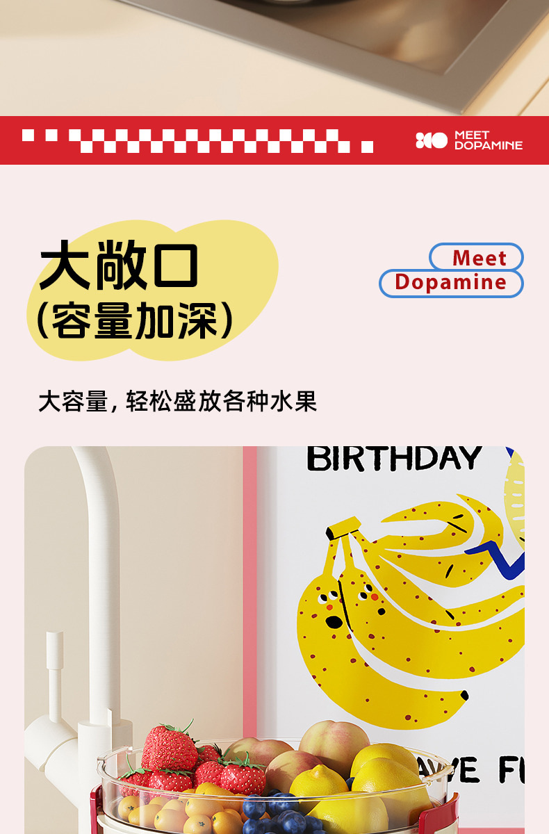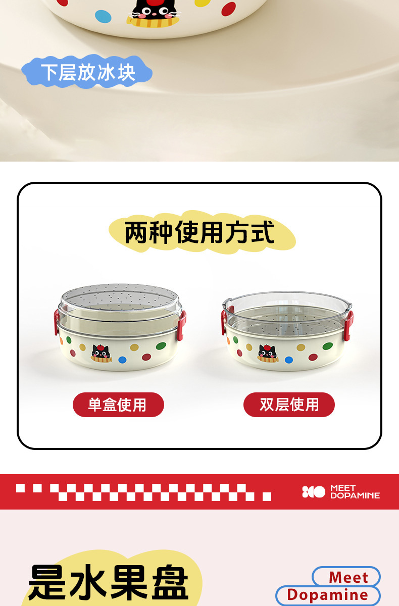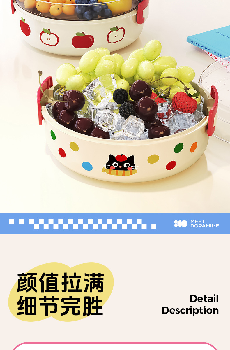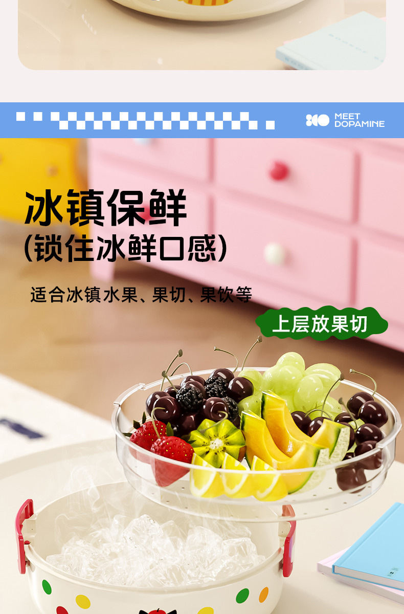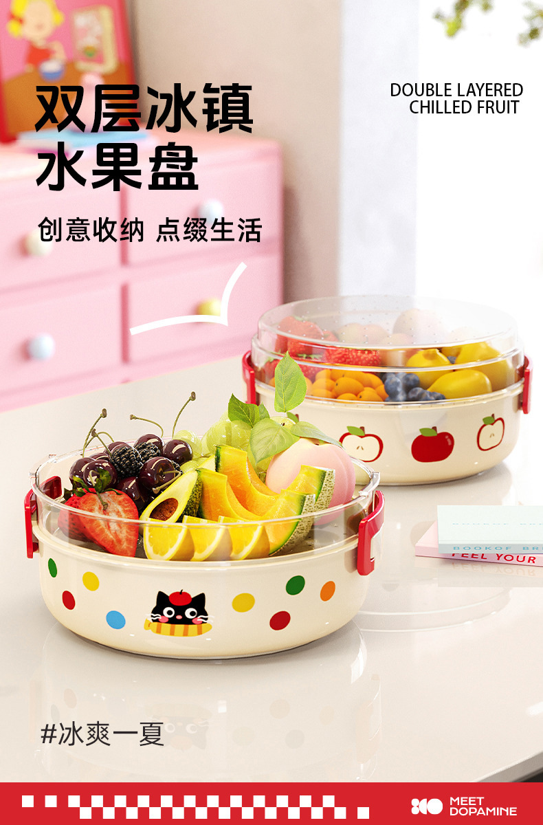 ドーパミン二重冷えた果物皿は、水を切って大容量の屋外大型多機能果物収納ケースを持つことができる