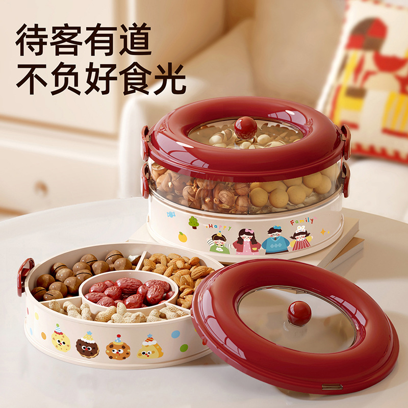 ドーパミン二層フルーツプレートフルーツボックスホームリビングルームコーヒーテーブルフルーツプレートスナックプレートドライフルーツ収納ボックス蓋付き