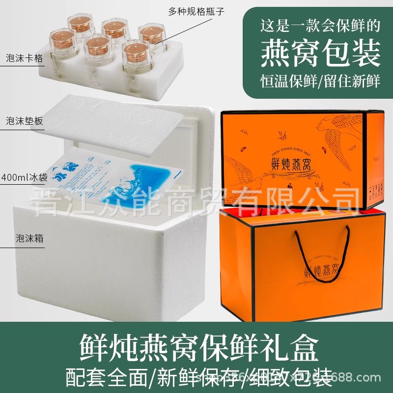 新しいインスタントツバメの巣の包装箱の瓶のツバメの巣の新鮮な煮込みの贈り物の箱のpvcの冷蔵のコールドチェーンの簡易の贈り物の箱