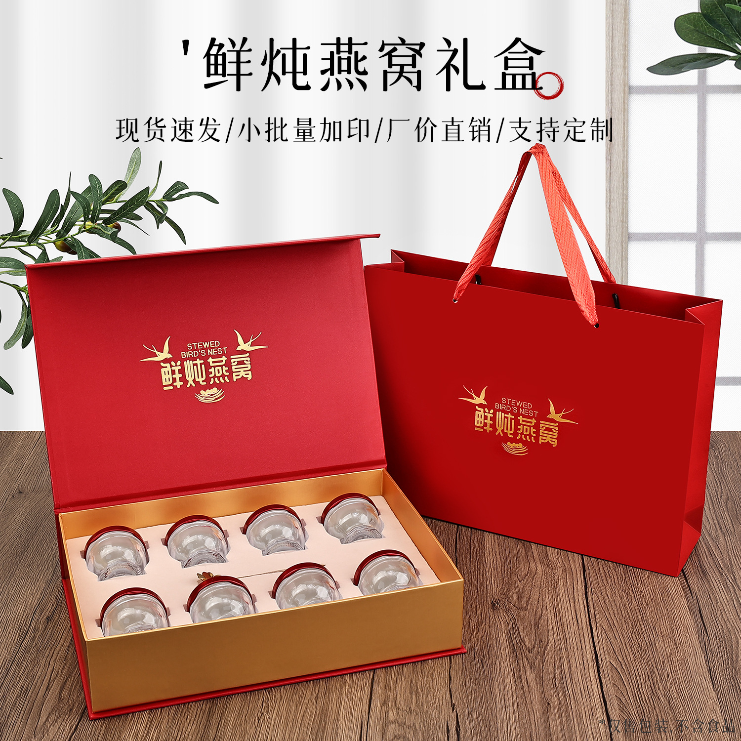 中国红鲜炖燕窝包装礼品盒6瓶8瓶即食燕窝分装瓶空盒包装加印包邮
