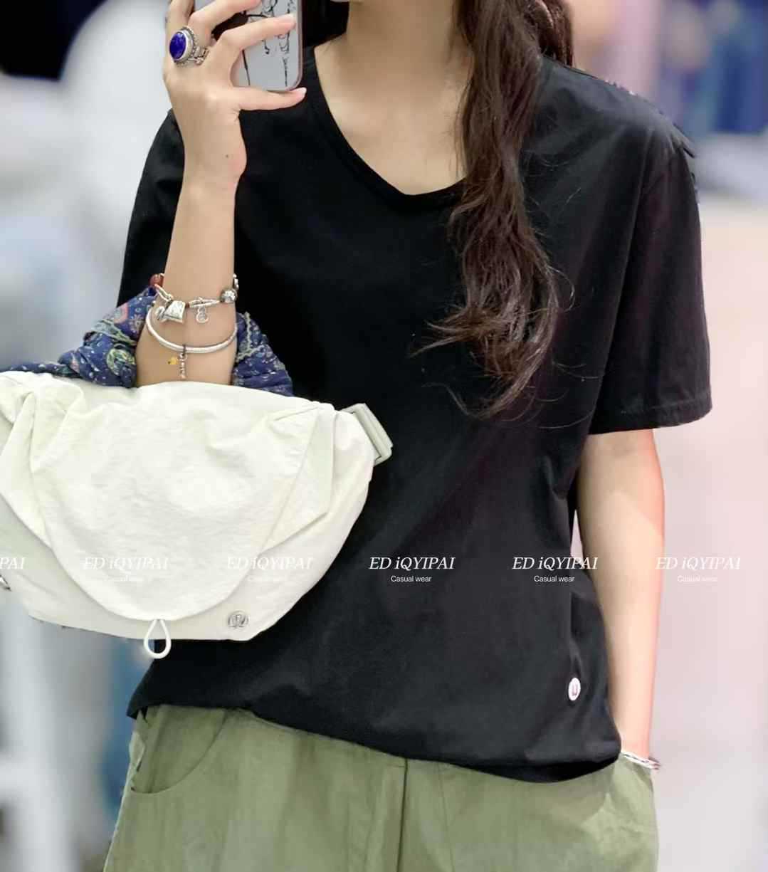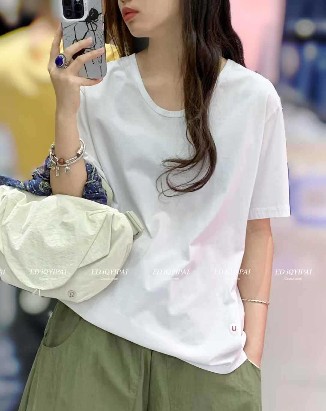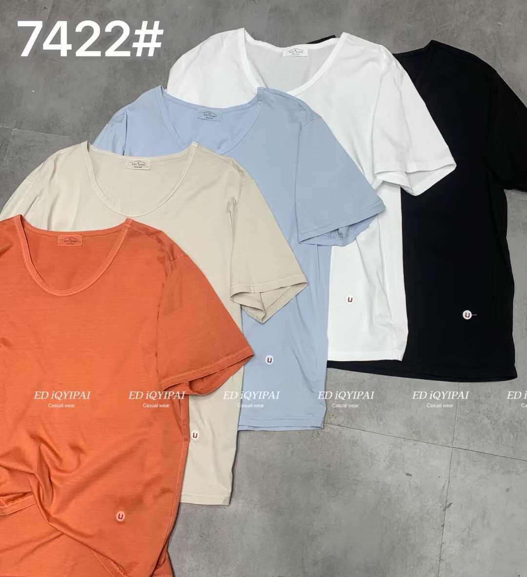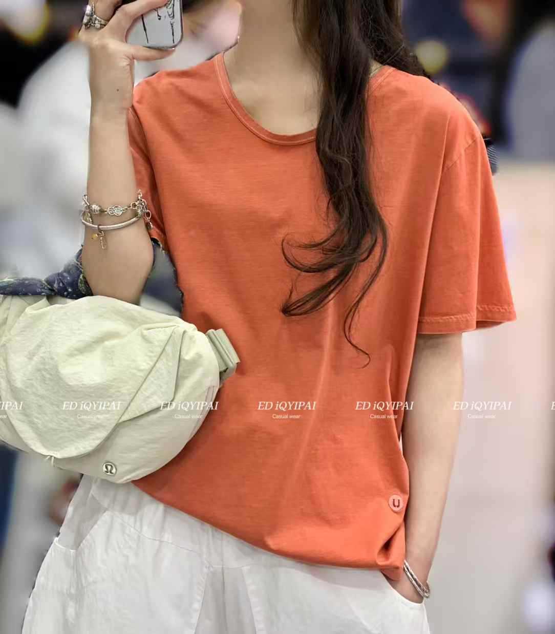 Ed7422砂洗純綿刺繍減齢痩せ半袖tシャツ2025百合気質カジュアルジャケット夏