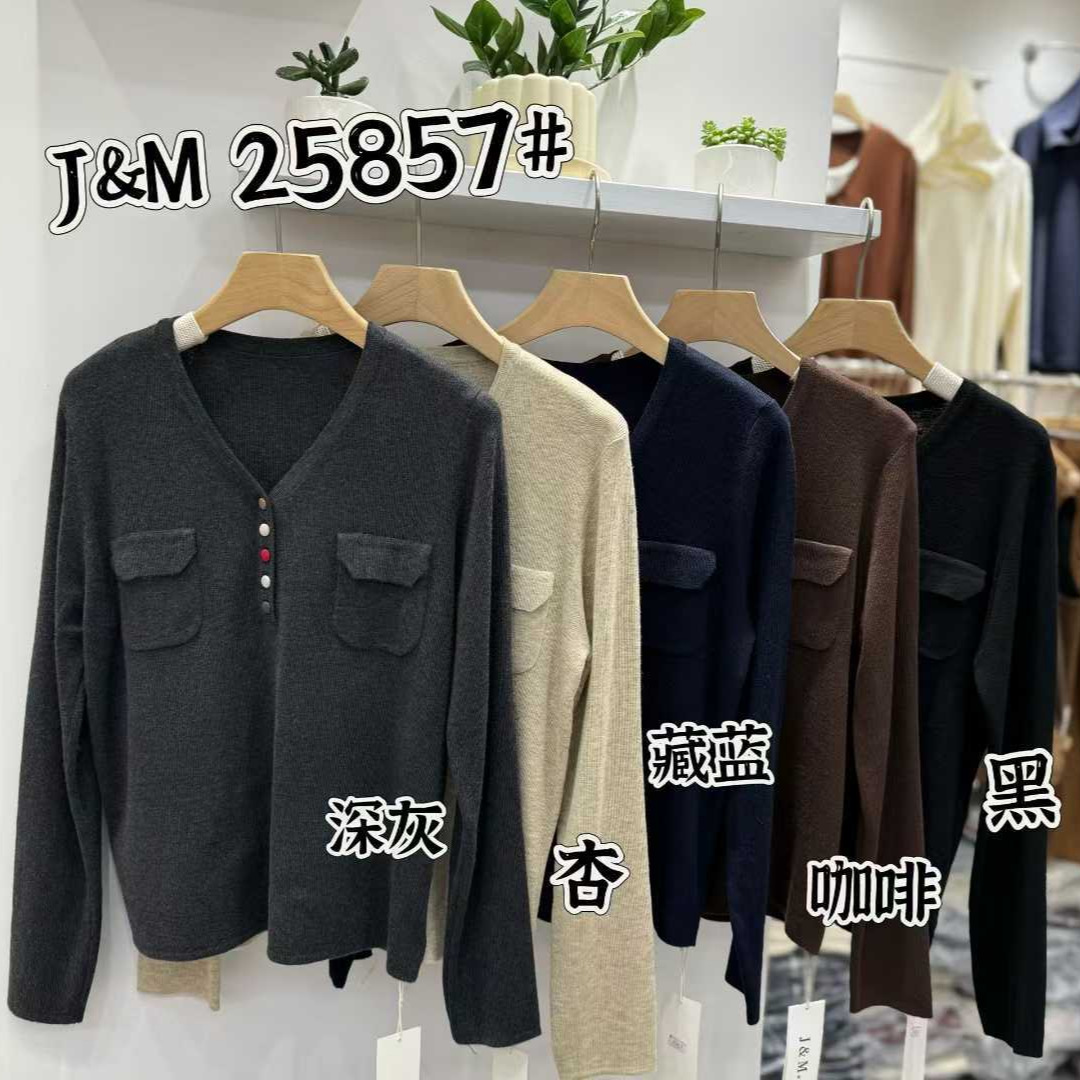 jm25857文艺温柔V领内搭针织衫女2025秋冬韩系气质纯色上衣打底衫