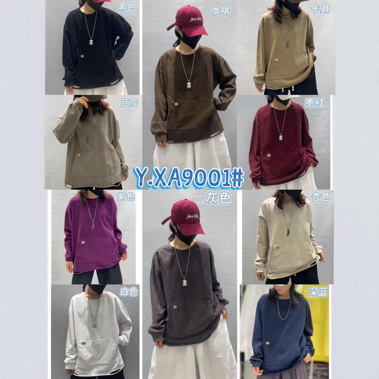 yxA9001纯棉宽松大版圆领休闲打底衫2025秋冬新品破洞设计T恤女装
