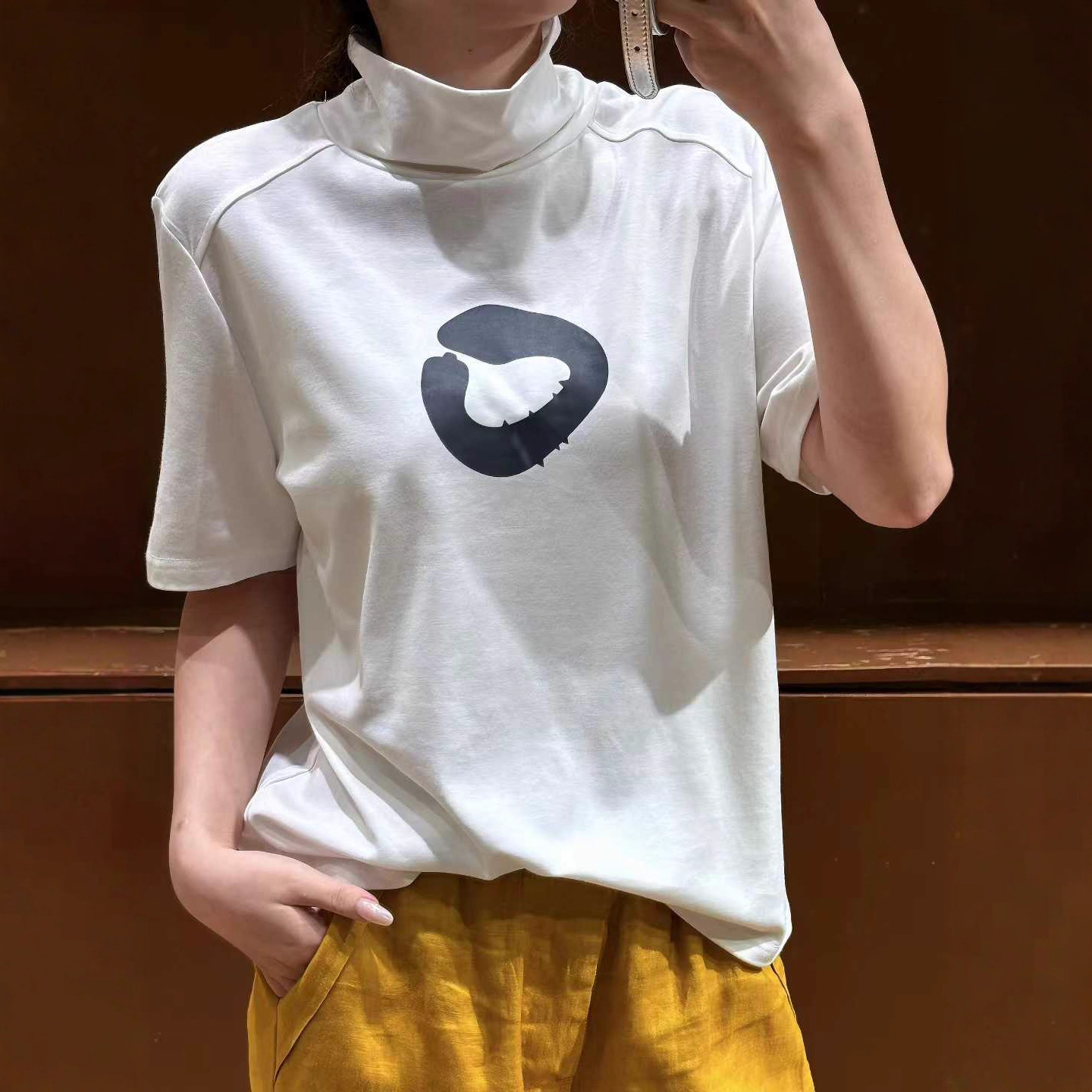 bjl1365纯棉宽松大版半高领中袖T恤2025夏季新品纯色内搭上衣女装