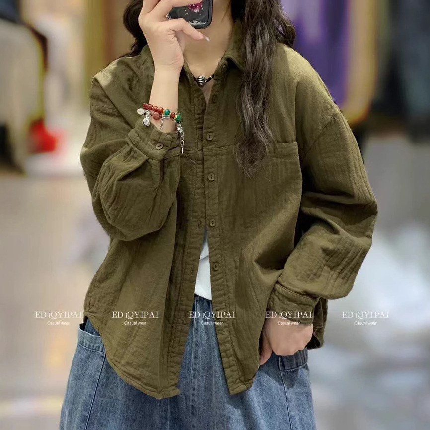 Ed3468 # 100% 綿厚手二重綿シャツカーディガン2025春新作純色百合ゆるいシャツ