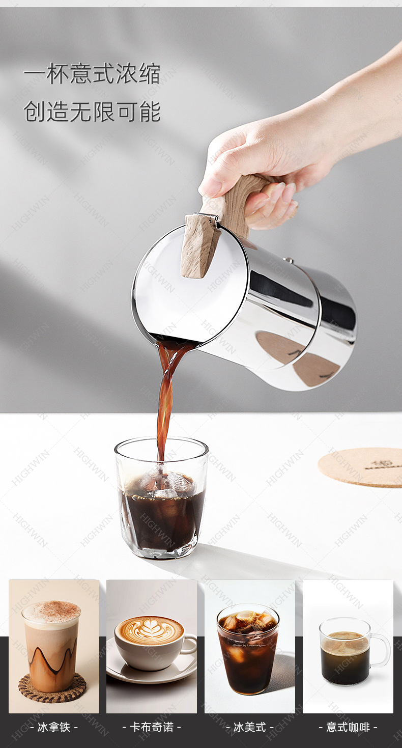 Highwinステンレスのモカ壺のイタリア式の濃縮コーヒーポットのクロスボーダーの爆発的な家庭用ヨーロッパ式のコーヒー器