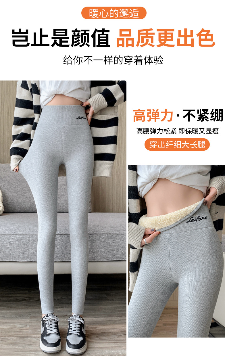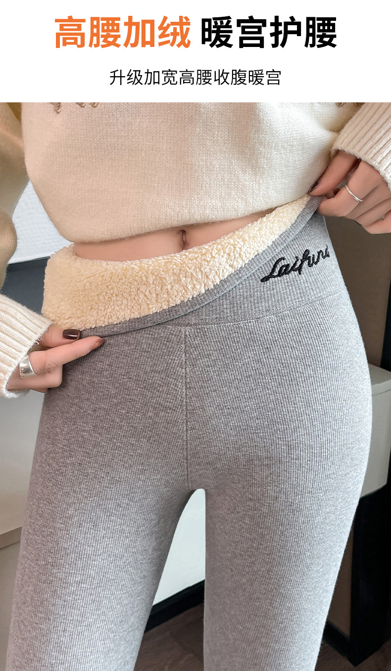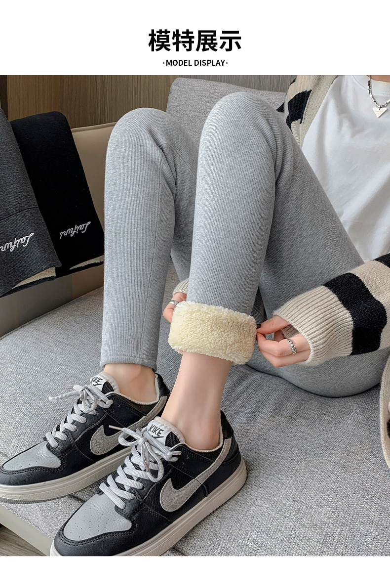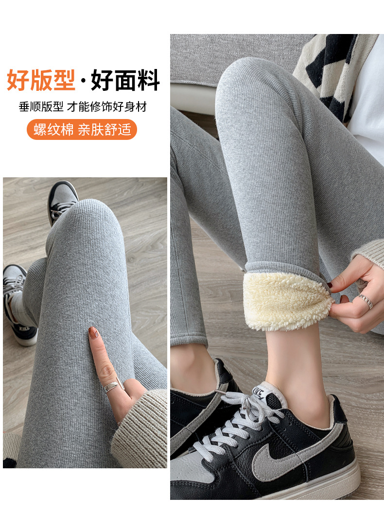 2024 秋と冬のベルベット肥厚グレーレギンス女性のアウターウェア高弾性ラムズウールサーマルパンツ東北綿ウールパンツ