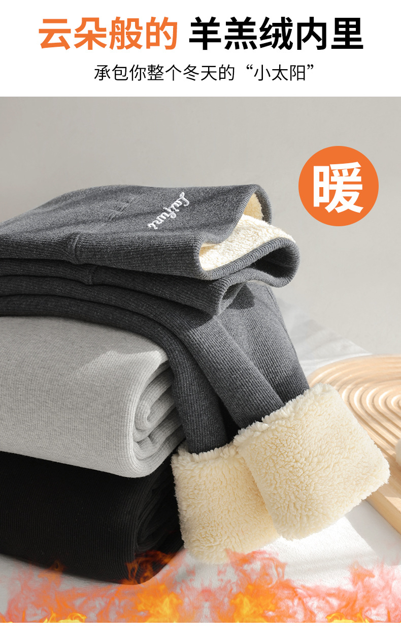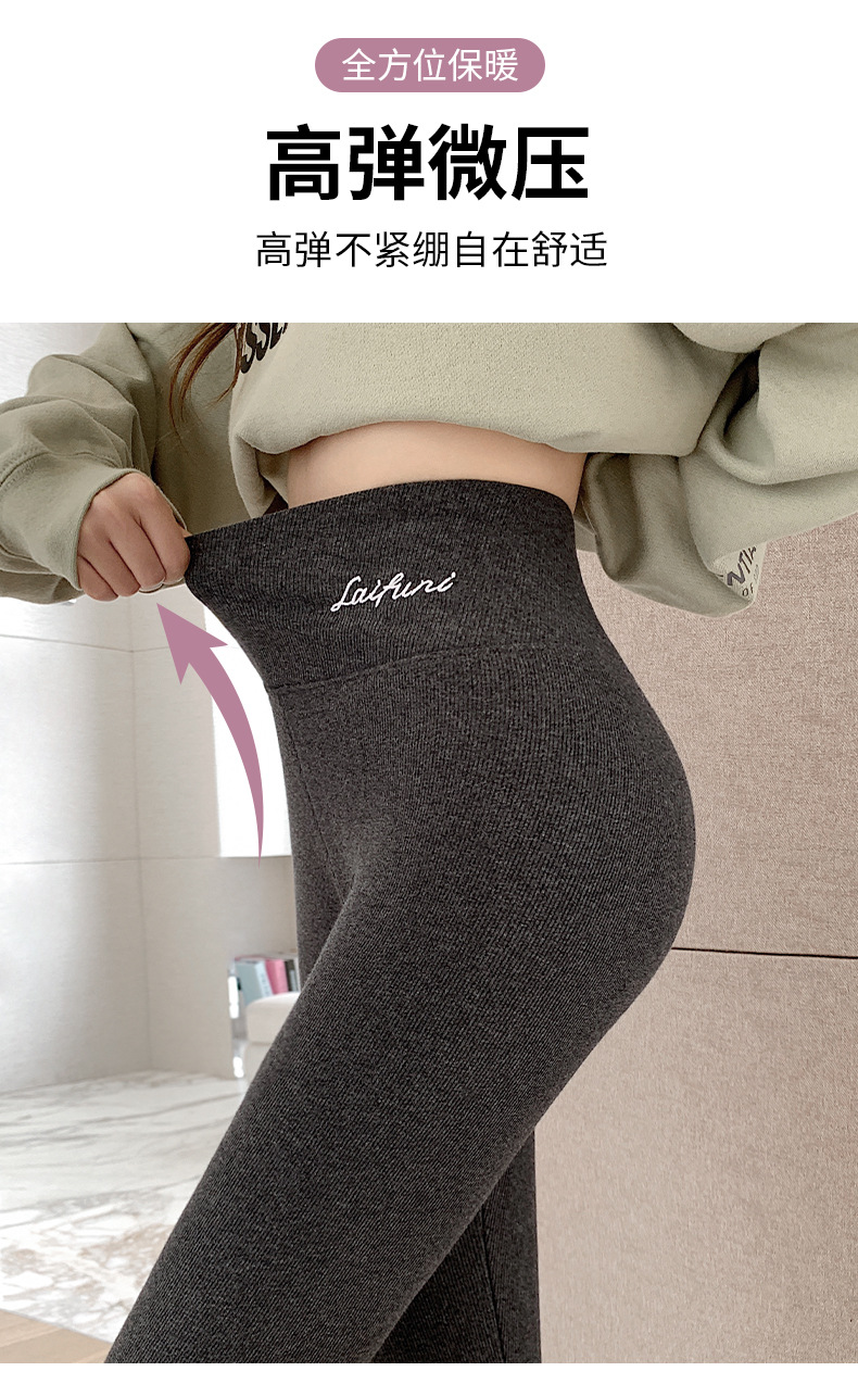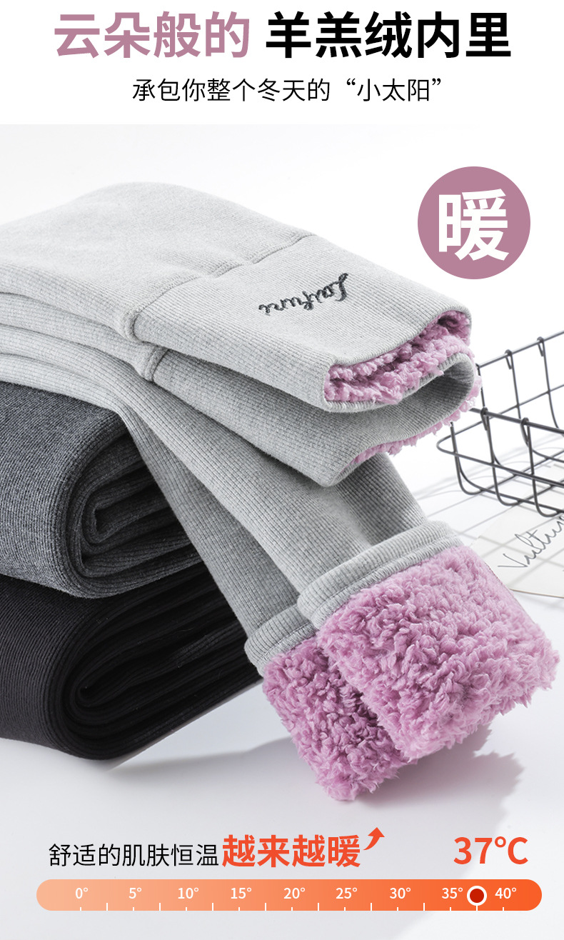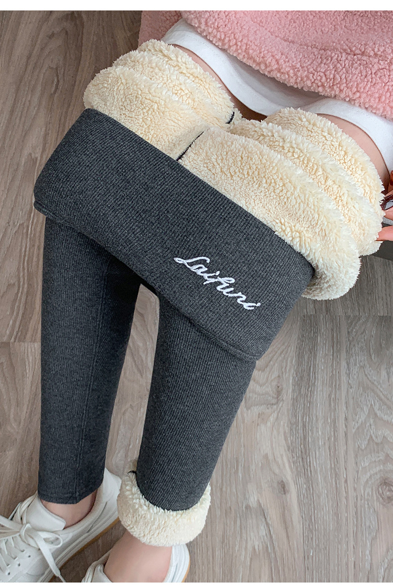 2024 秋と冬のベルベット肥厚グレーレギンス女性のアウターウェア高弾性ラムズウールサーマルパンツ東北綿ウールパンツ