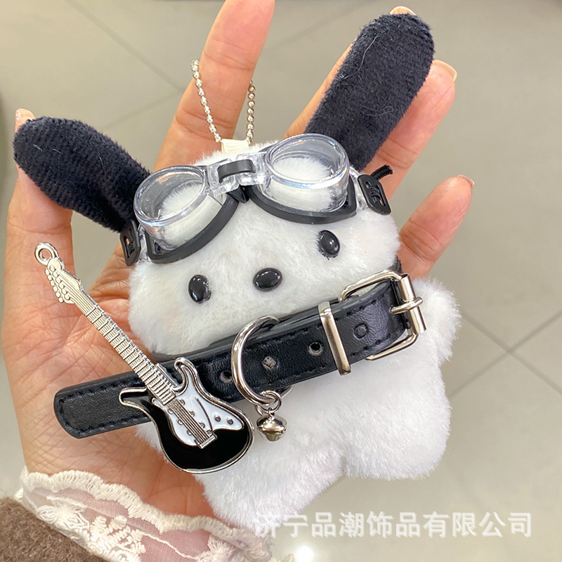 爆発的なウサギの青い蝶結びのバックパックの漫画のかわいいぬいぐるみのペンダントのかわいい骨の飛行の犬のメガネの犬の鍵