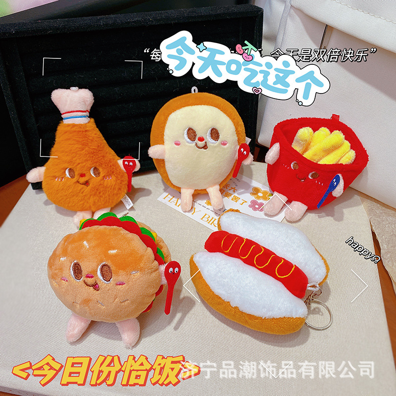 擬似食遊びストラップハンバーガーポテトチップスぬいぐるみかばん掛け飾りホットドッグ鶏脚キーホルダーinsネットレッド