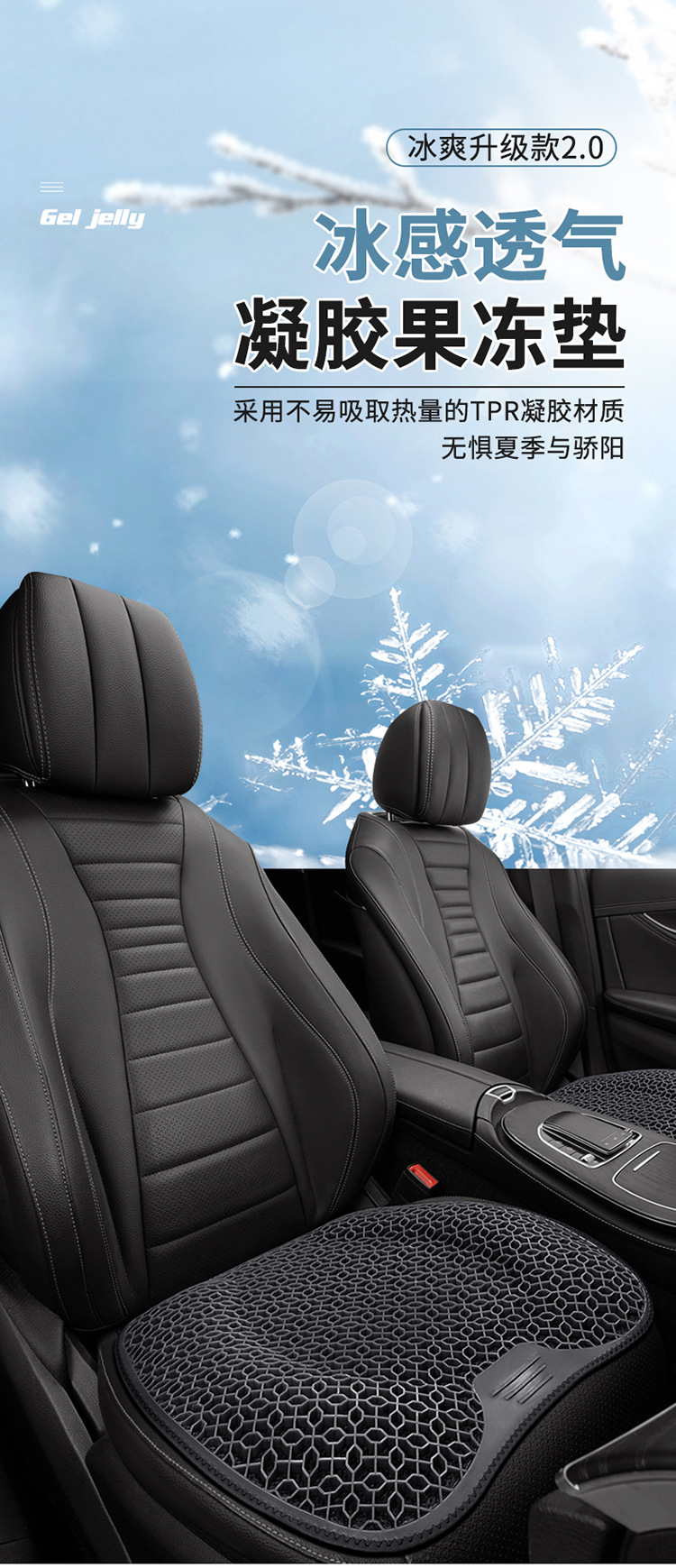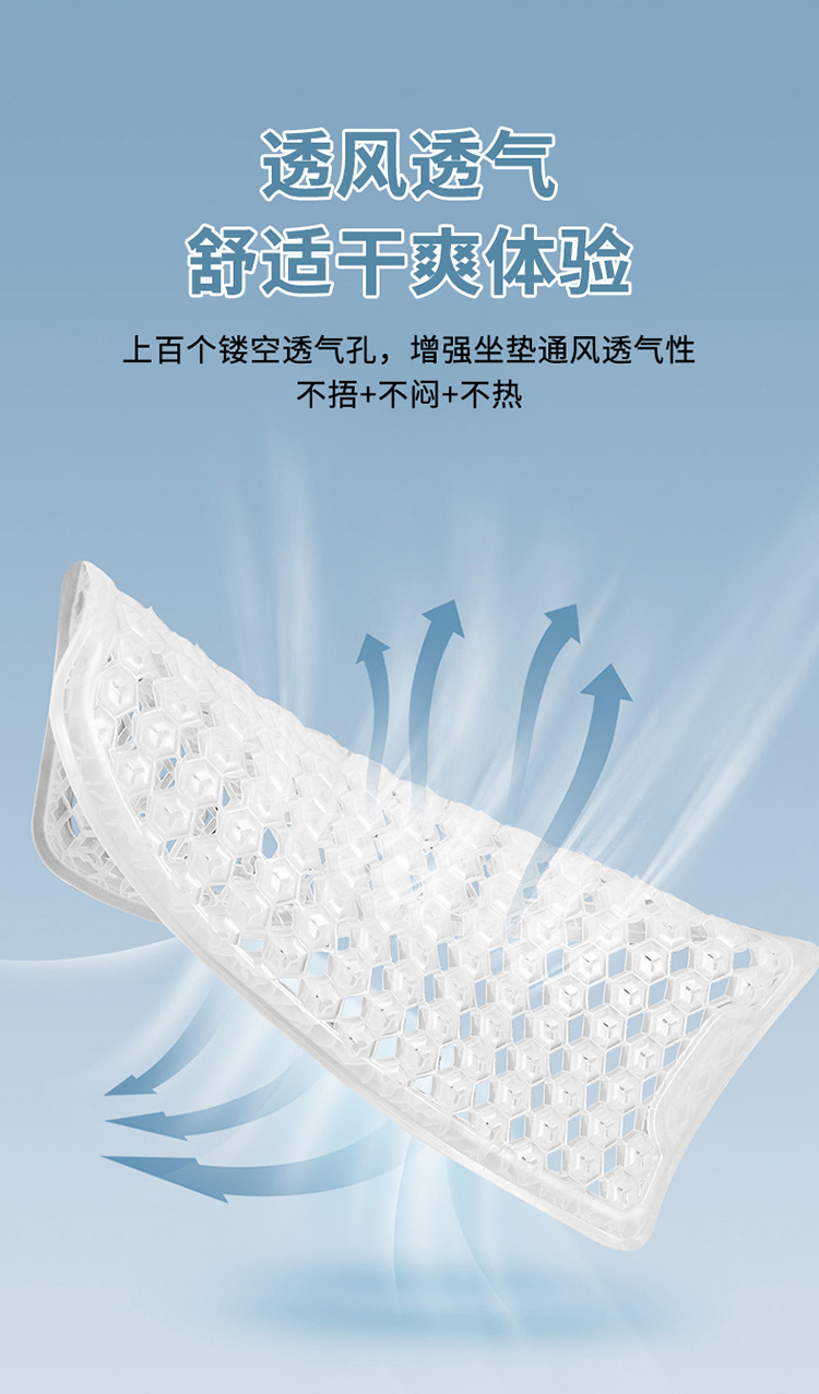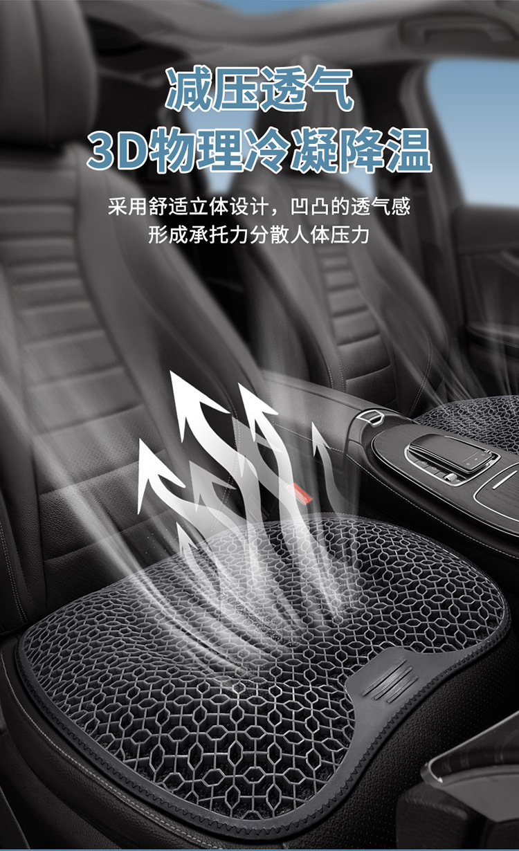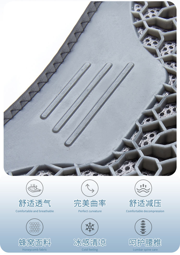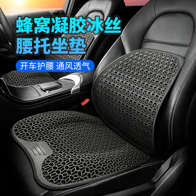 夏用車用腰痛サポートクッション、ハニカムジェルアイスシルク腰枕、夏の運転時の腰痛対策、通気性のあるシート