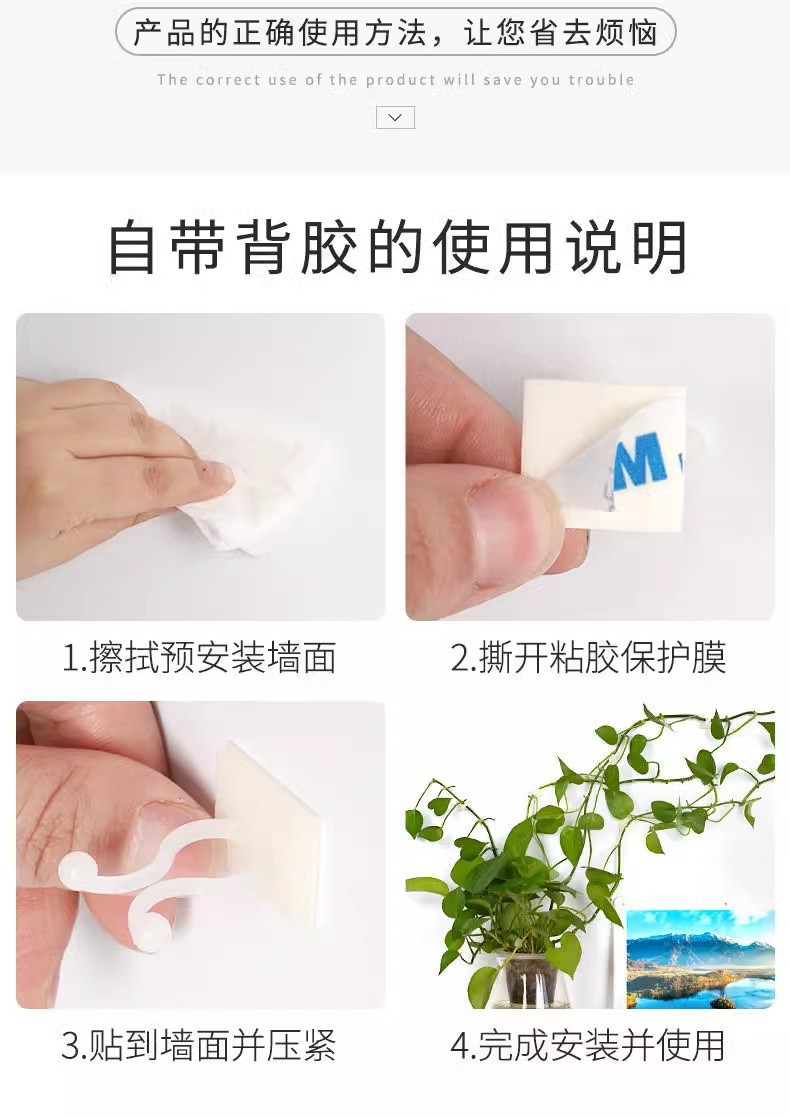 グリーンラタングリーン植物シームレス固定具釘不要パンチング壁クライミングアーティファクト粘着フックケーブル管理クリップ