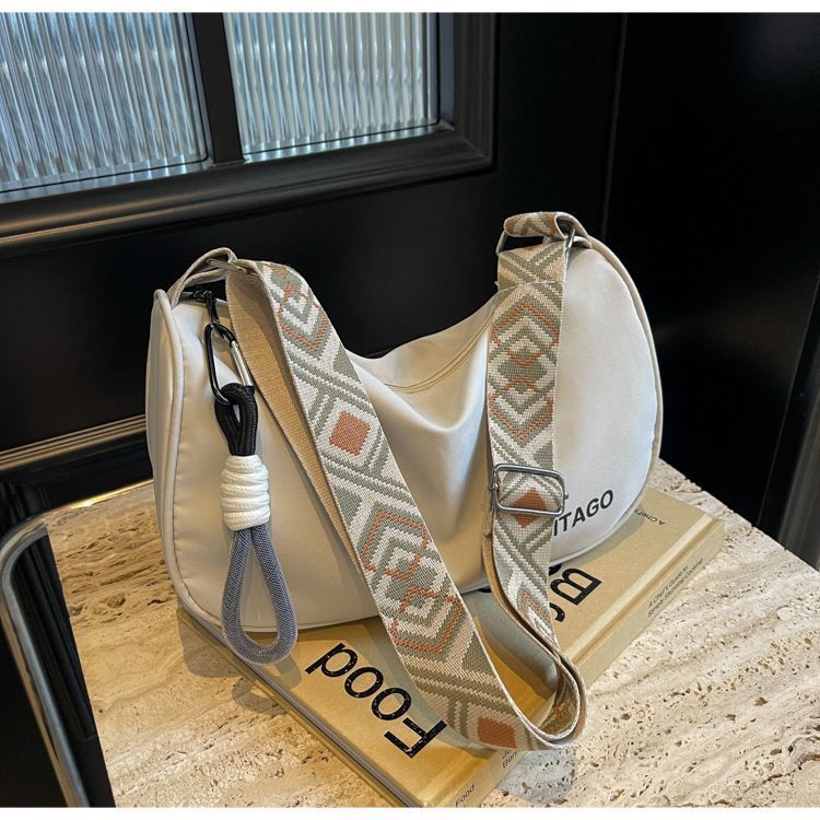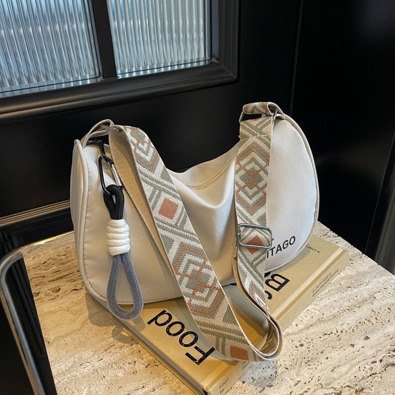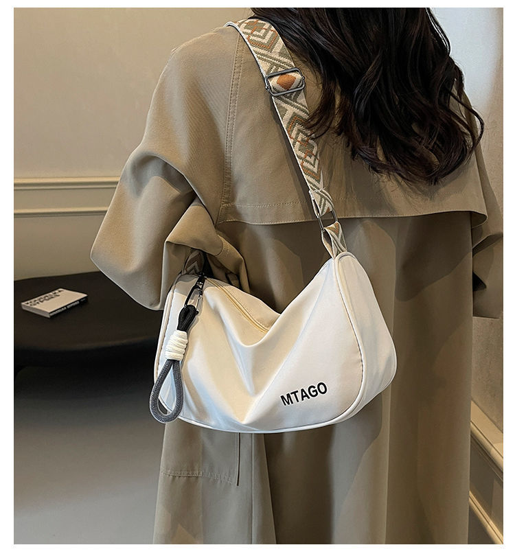 カジュアルな百合小衆バッグ女性2024新ファッション幅肩ベルト斜めショルダーバッグ軽やかでシンプルなシングル肩脇下バッグ