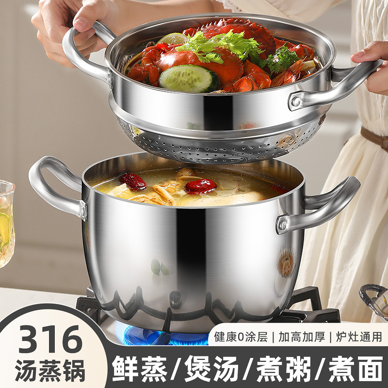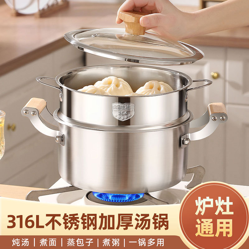 コーティングなし316セラミックステンレススープ鍋蒸し鍋家庭用ガス電磁炉蒸煮シチュー鍋両耳煮鍋