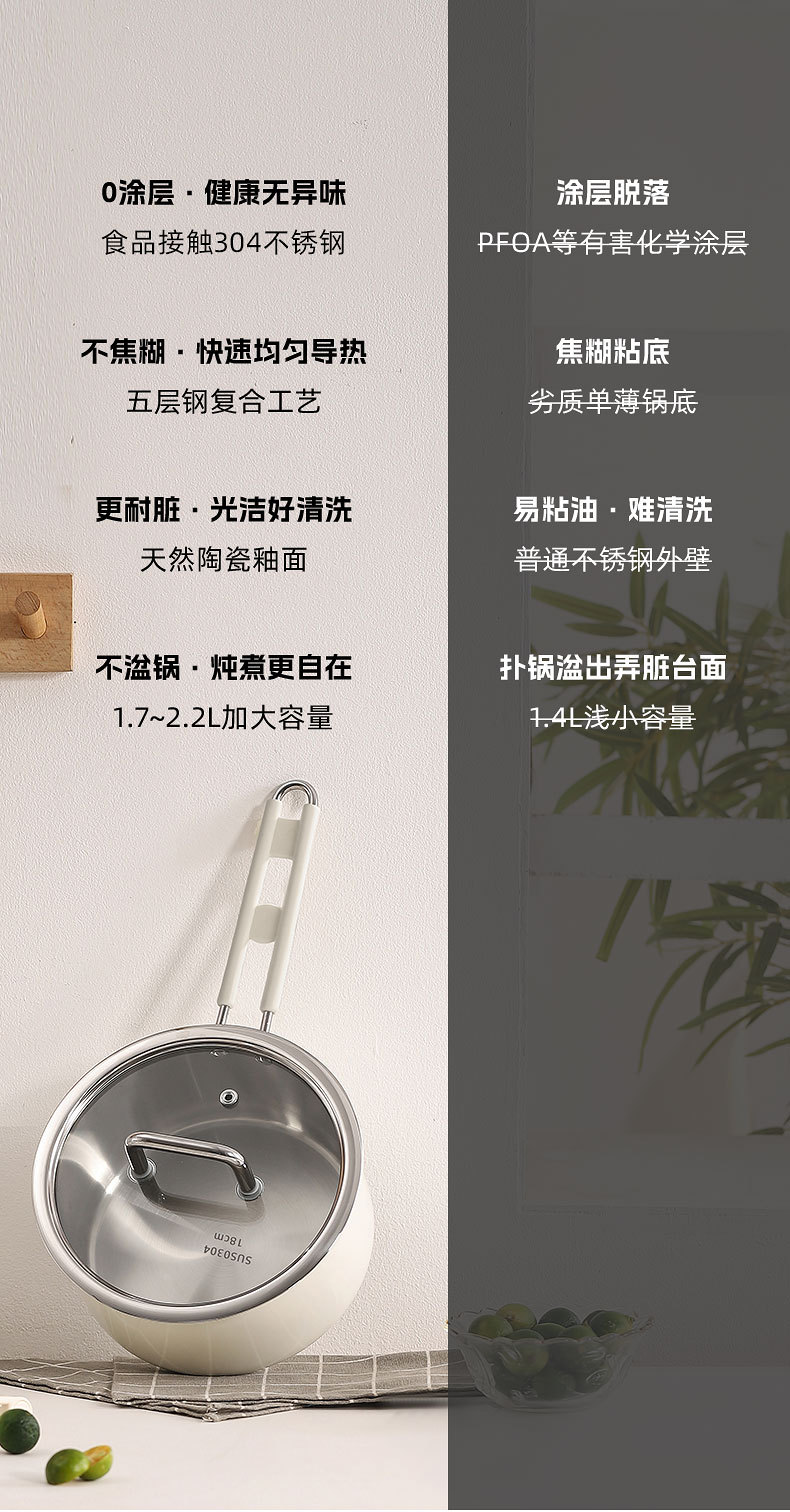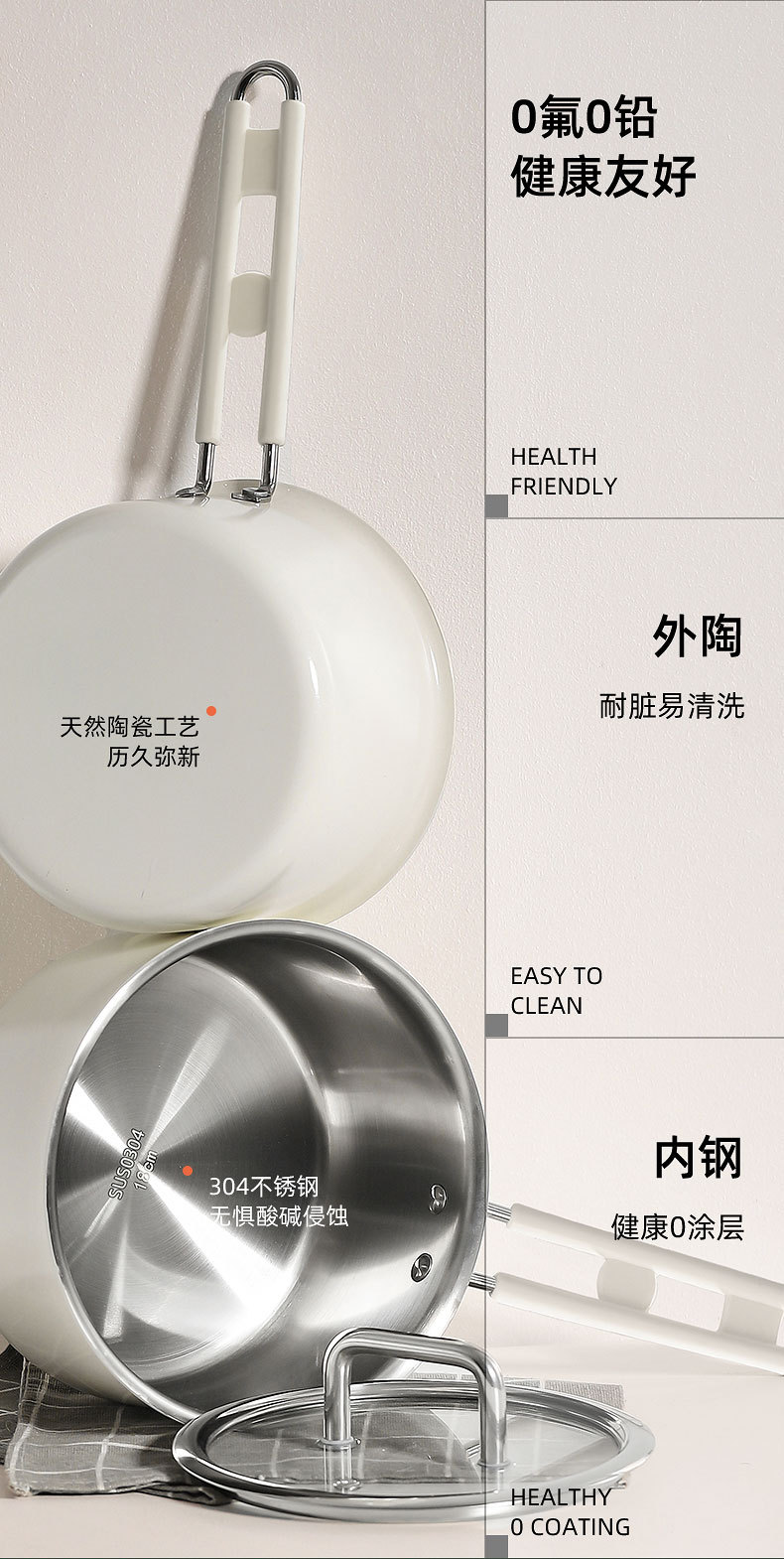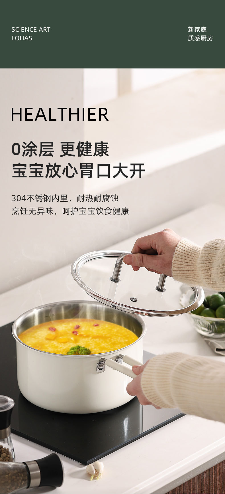无涂层316不锈钢陶瓷小奶锅宝宝辅食锅婴儿煎煮一体汤锅煮面热奶