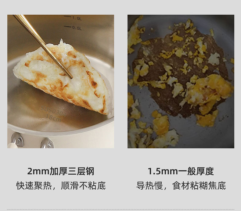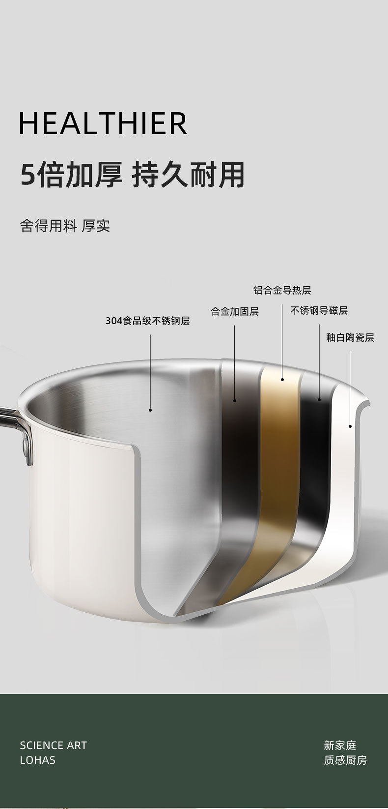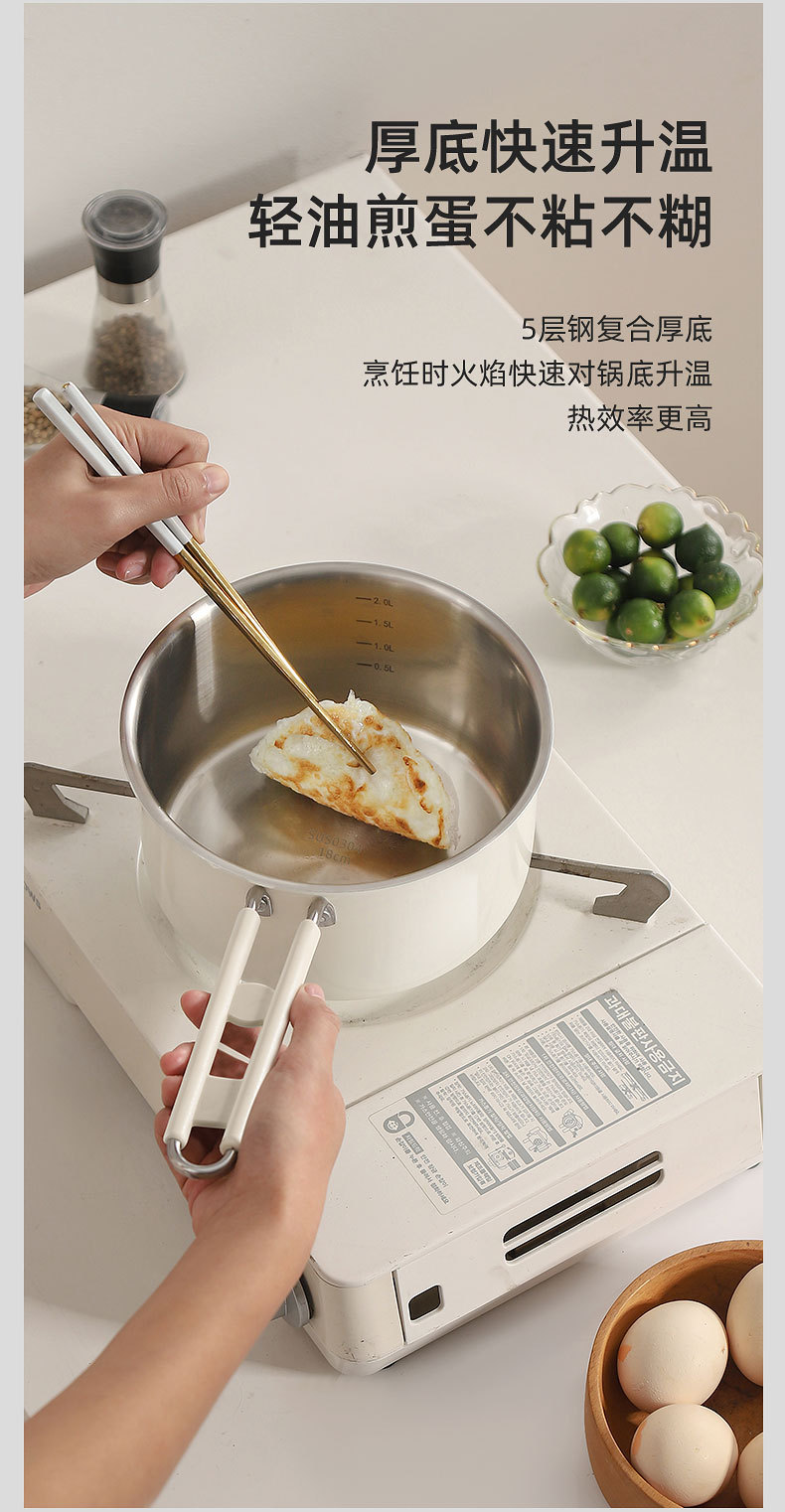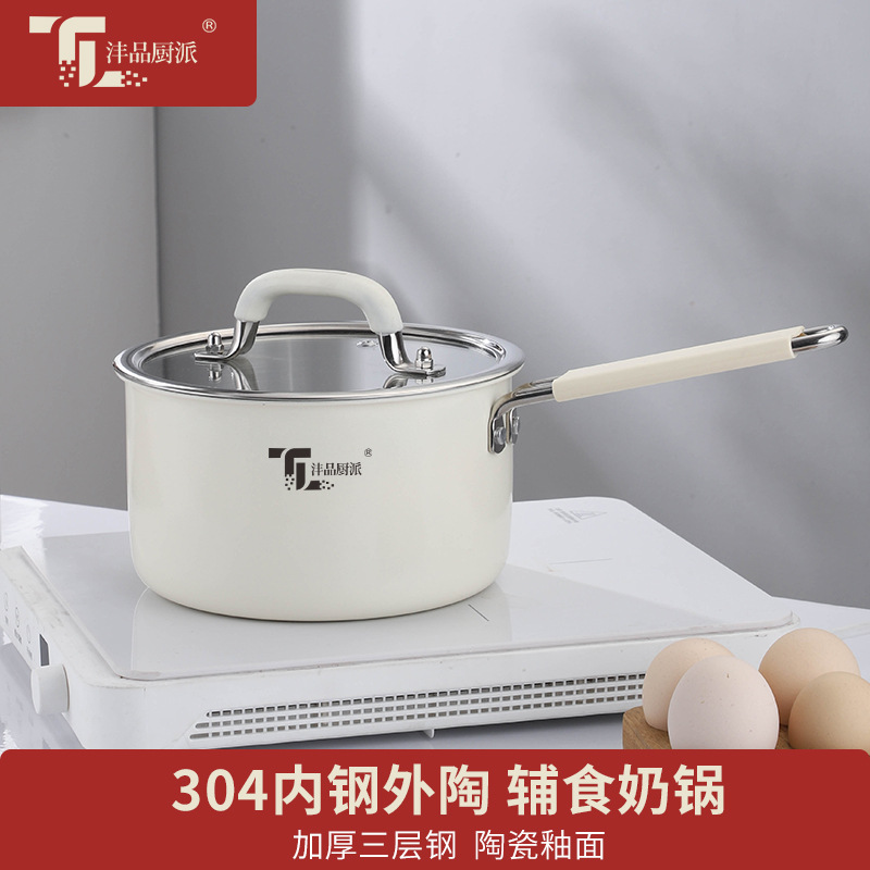 无涂层316不锈钢陶瓷小奶锅宝宝辅食锅婴儿煎煮一体汤锅煮面热奶