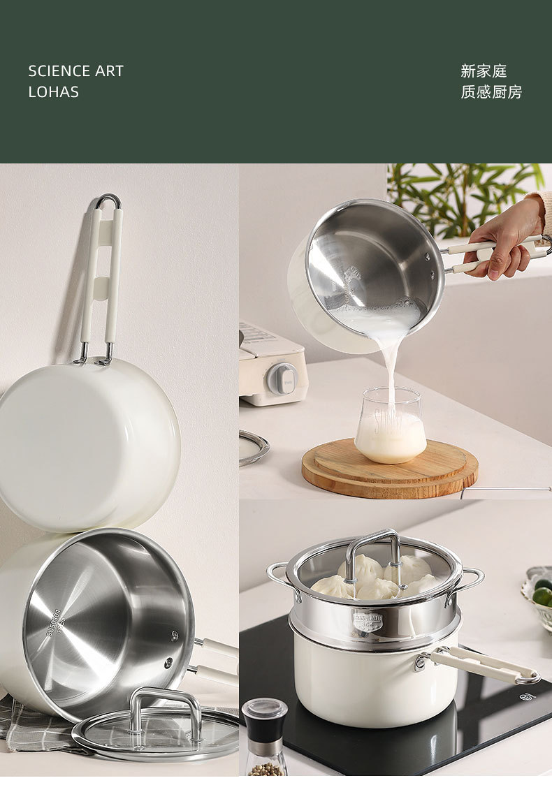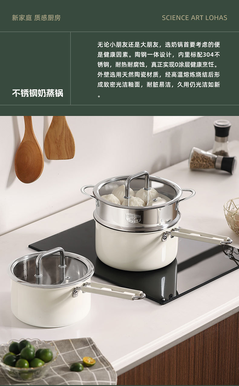 【16CM 蓋付きミルクポット】セラミックとスチール一体型,【16CM蓋付ミルクポット+304蒸し器】セラミックとスチール一体型,【18CM 蓋付きミルクポット】セラミックとスチール一体型,【18CM蓋付ミルクポット+304蒸し器】セラミックとスチールが一体化