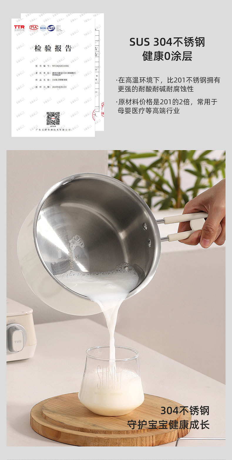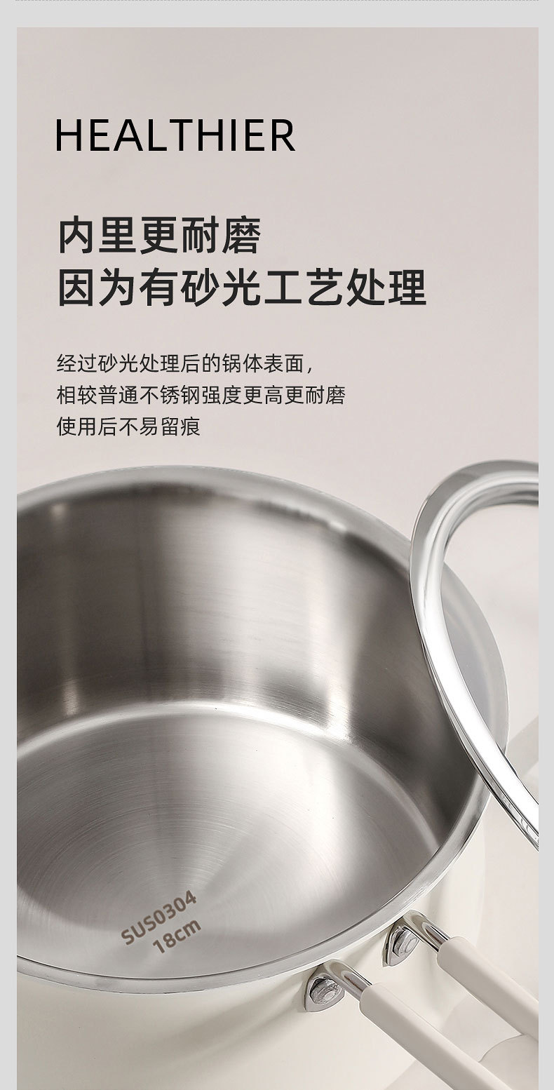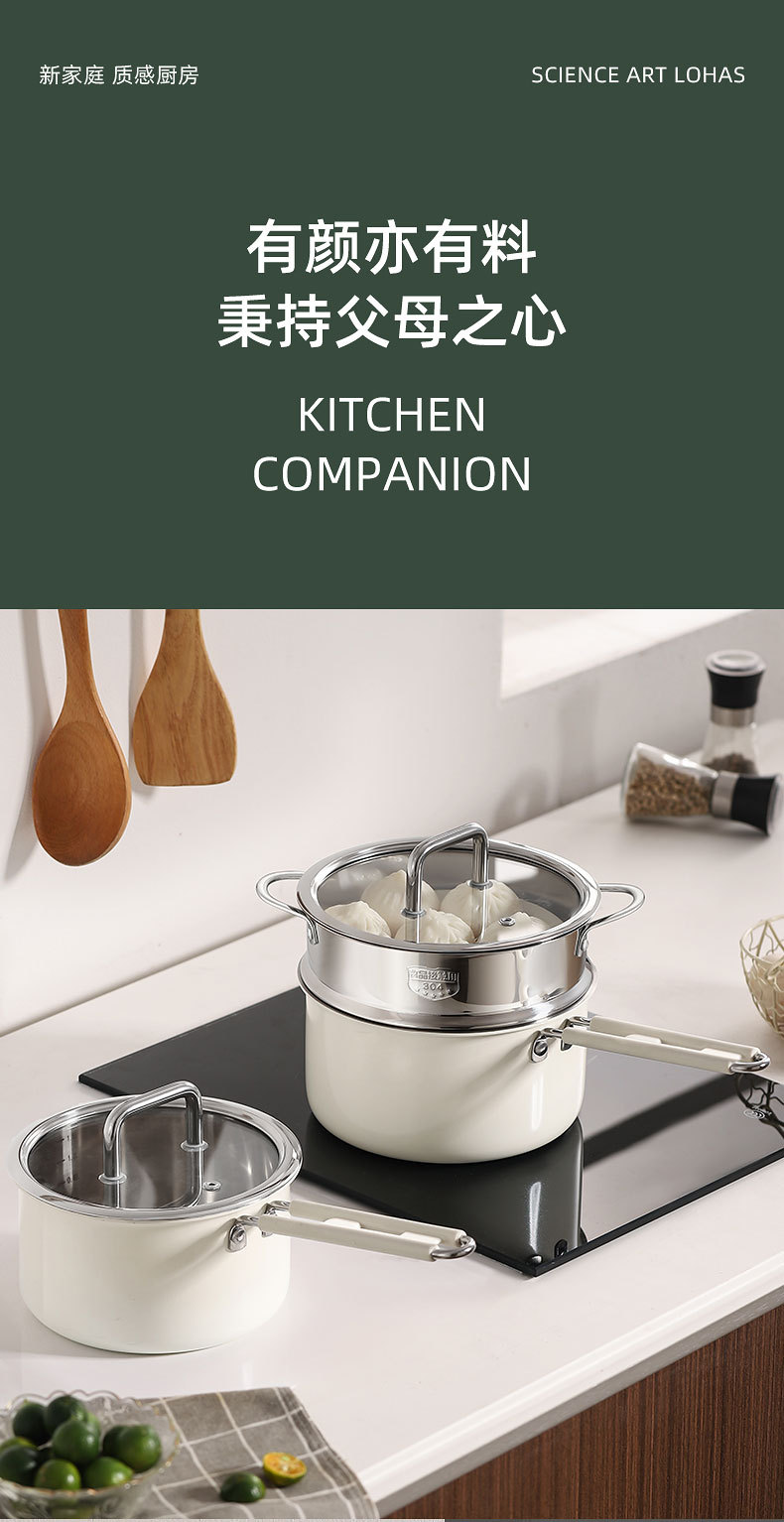 无涂层316L不锈钢陶瓷小奶锅宝宝婴儿辅食锅不粘锅蒸煮一体汤锅