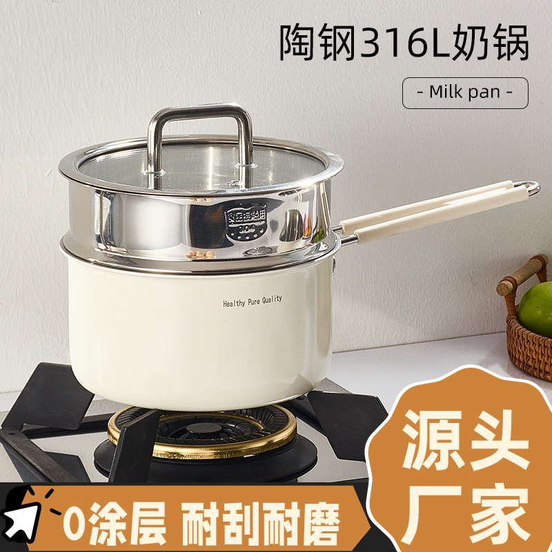 コーティングなし316ステンレスセラミックミルク鍋赤ちゃん補助鍋ガラススープ鍋家庭用茹で麺の熱いミルクが鍋にくっつかない