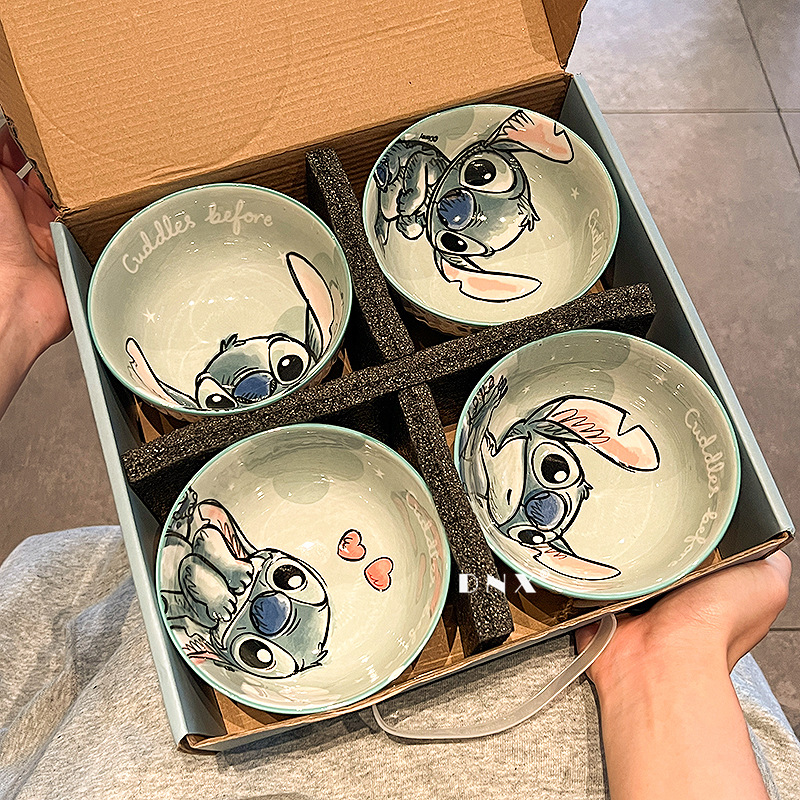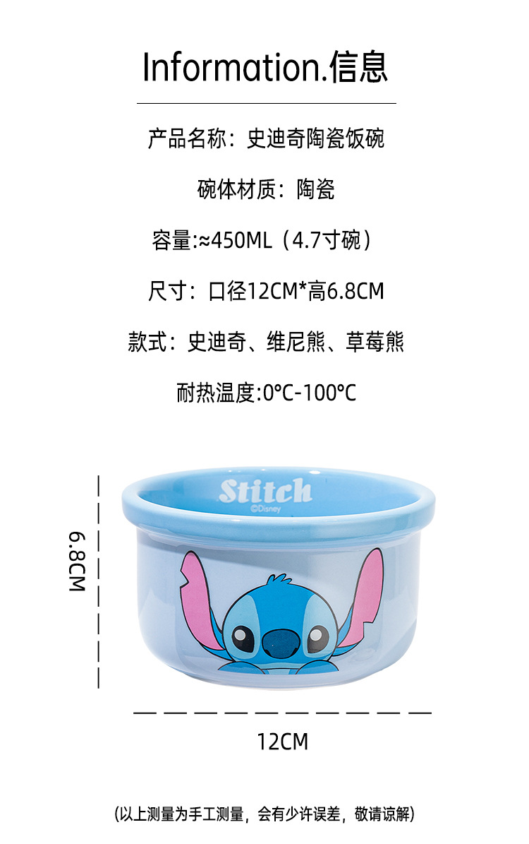 史迪仔儿童饭碗家用陶瓷碗高颜值卡通餐具宝宝辅食碗沙拉碗汤面碗