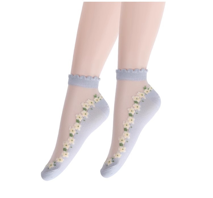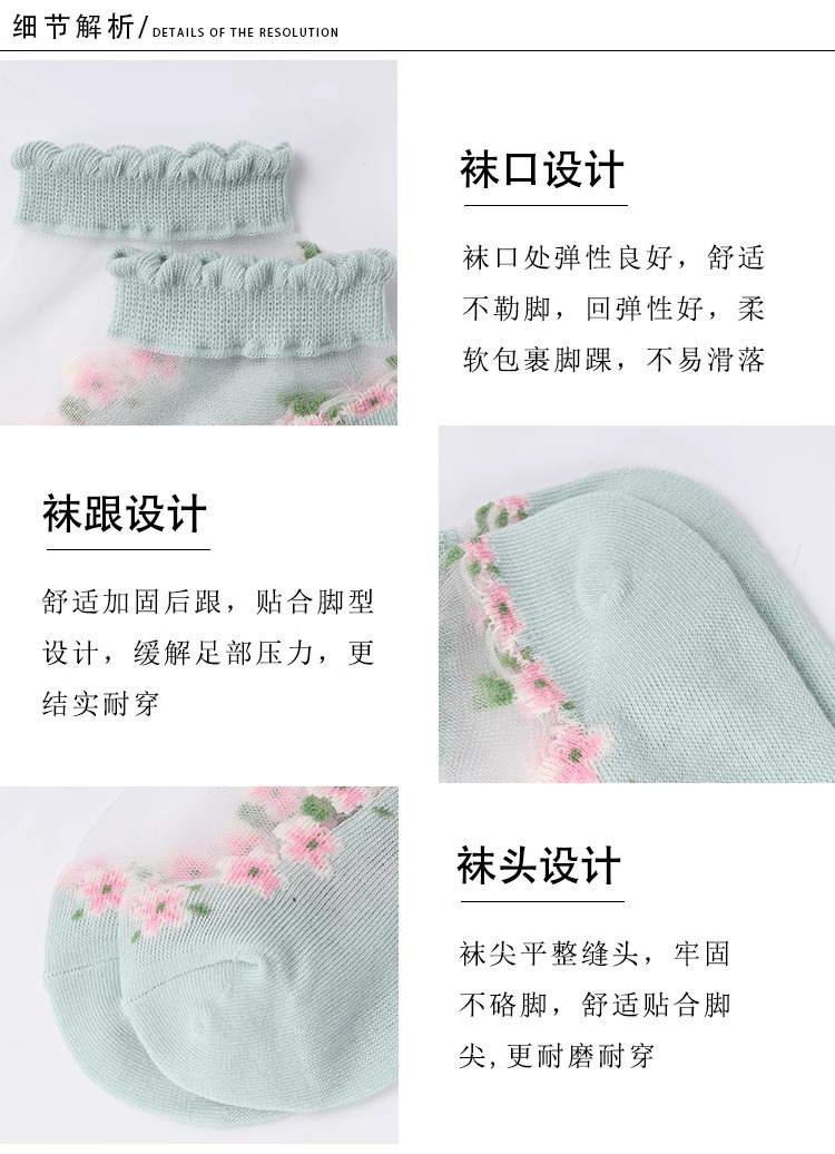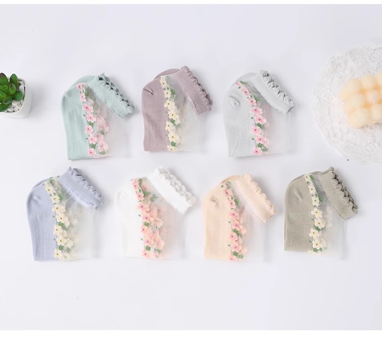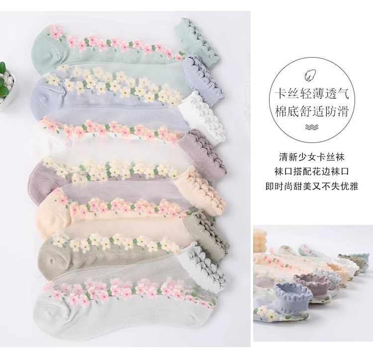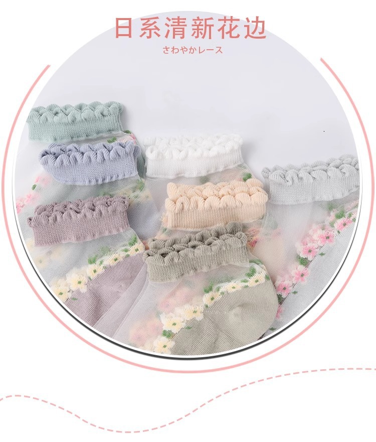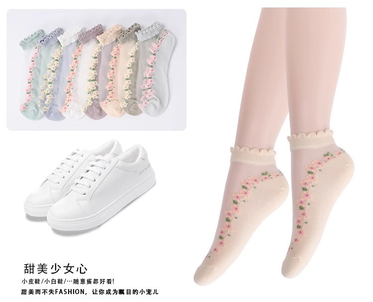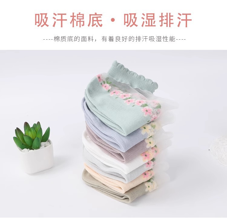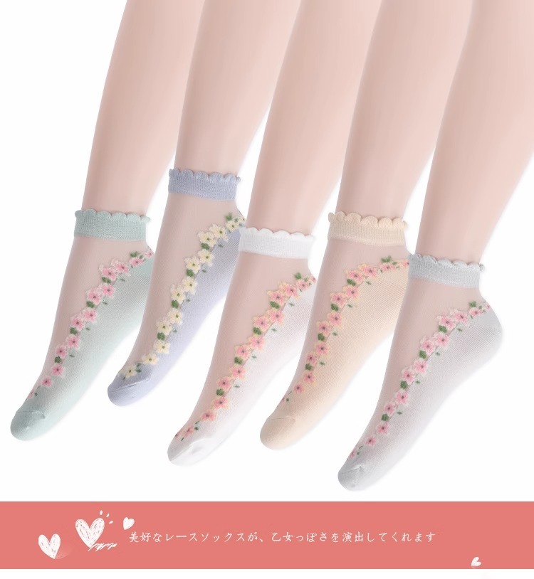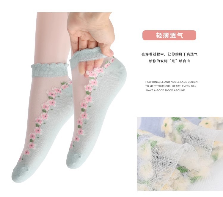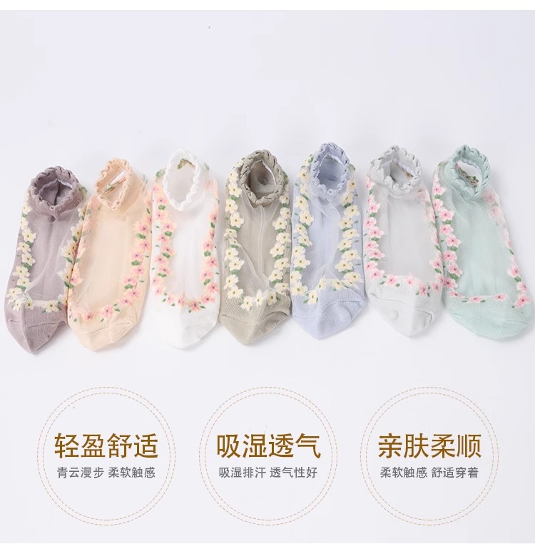 国境を越えた人気の靴下花柄ガラスシルクトレンディな靴下東南アジアで売れ筋の通気性と吸汗性のレースの靴下ドロップシッピング