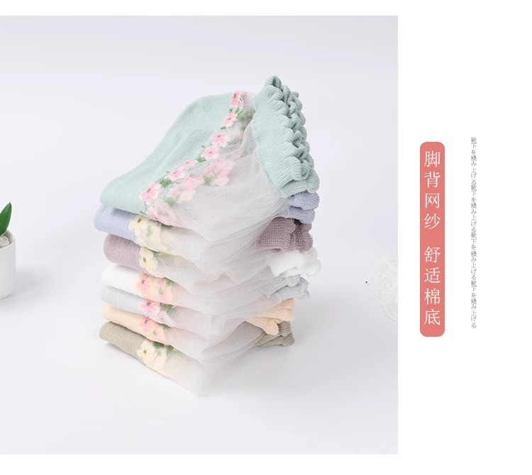 レースの花の靴下の子供の夏の氷のストッキングの夏の薄いタイプのソックスの浅い口の靴下の日本の水晶のガラスのストッキング