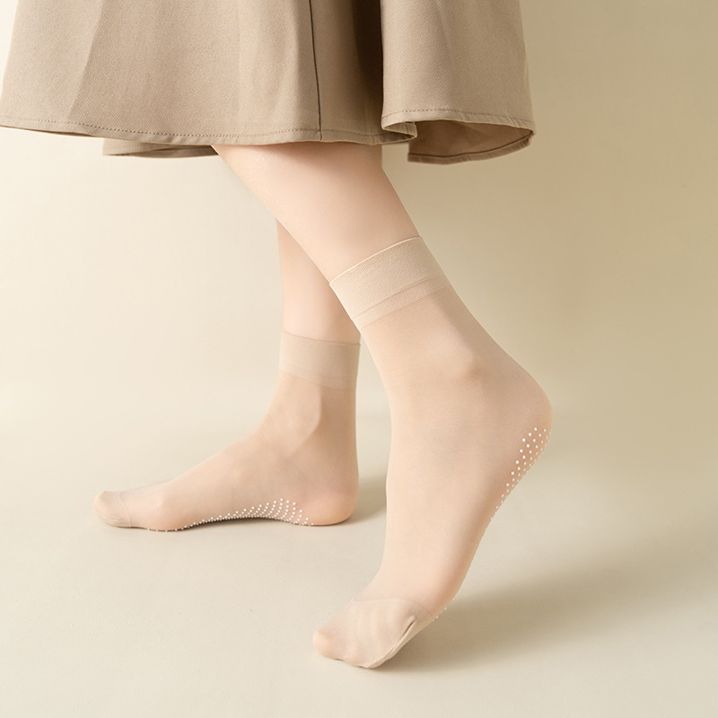 春と夏の薄いクリスタルシルク抗スナッチシリコーンノンスリップ肌色フロント透明超薄型目に見えないショートソックス女性のための卸売