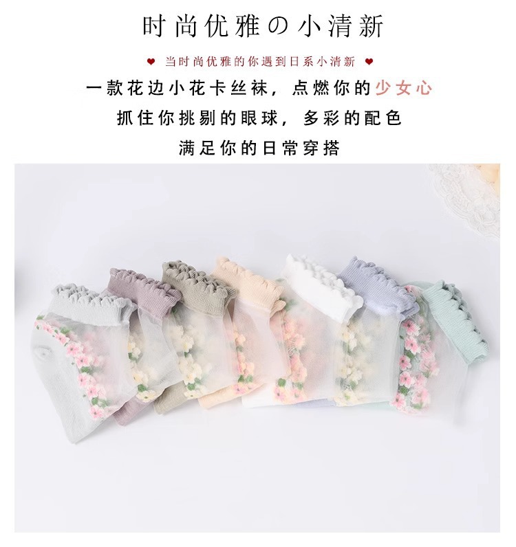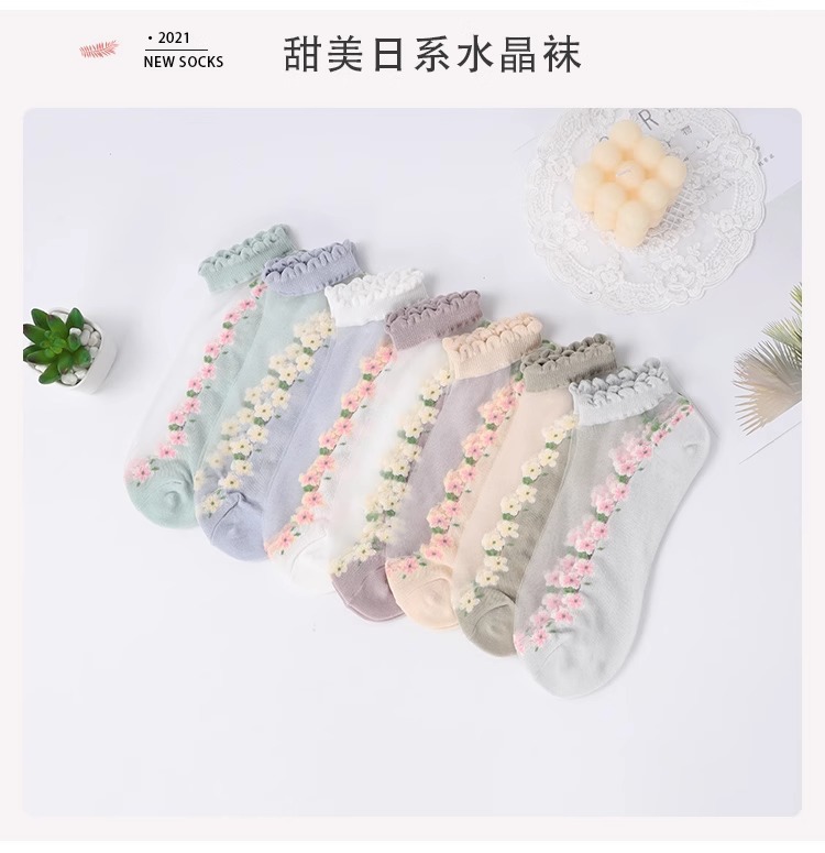 トレンディな女性のガラスストッキング、小さな新鮮なスタイル、通気性、吸汗性、カジュアルで甘いスタイル、花柄の女性の靴下、レースの靴下