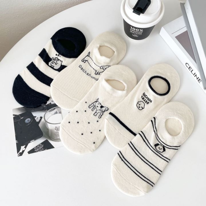 春夏の靴下かわいいショートソックス薄い漫画子犬柄ボートソックス多用途通気性浅い口の女性の靴下