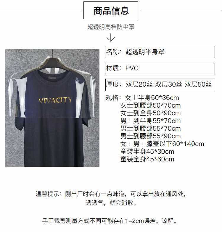 高透明衣類ダストカバー衣料品店肥厚プラスチックハーフボディカバーコートスーツダストバッグジャケット保護カバー