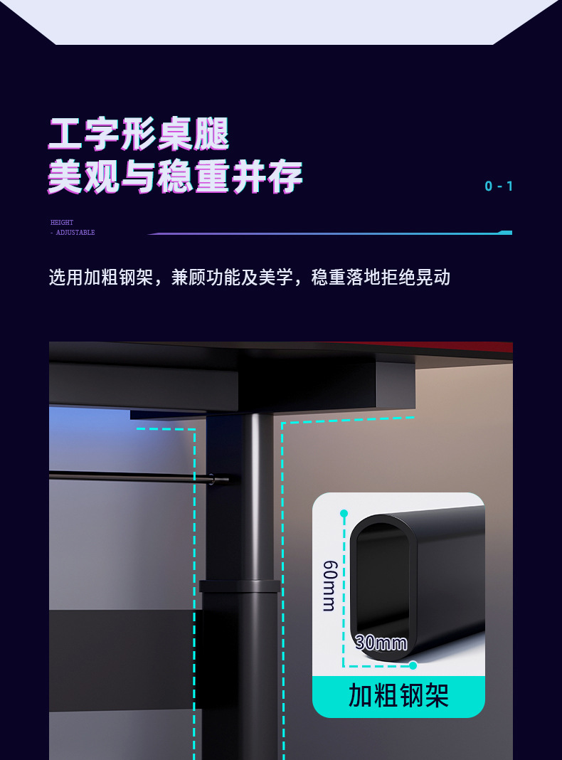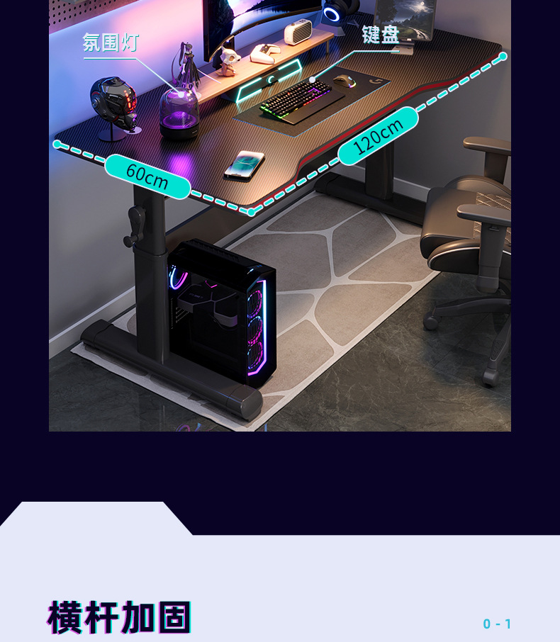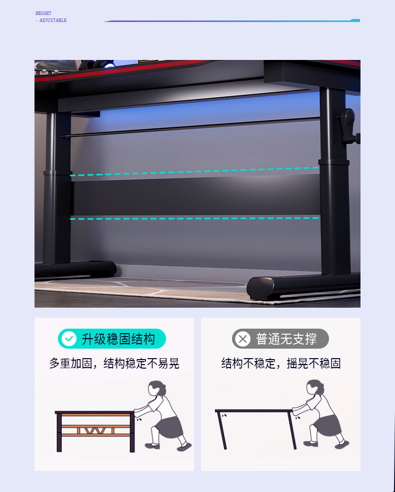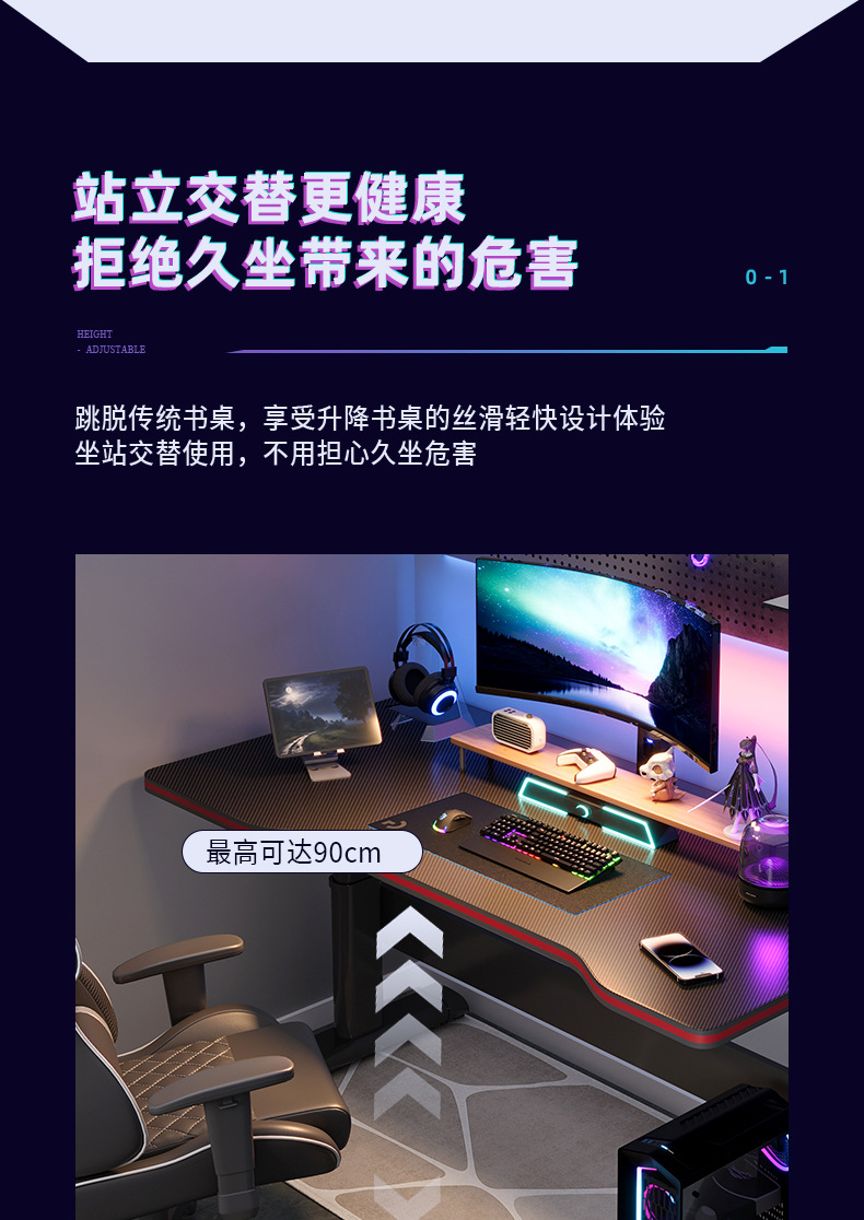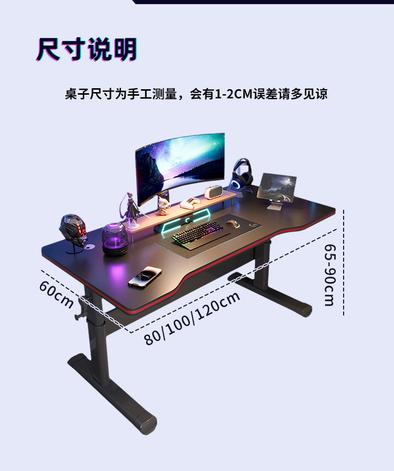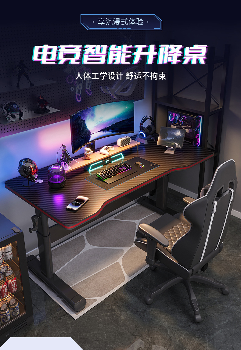 妆誉新款可升级家用办公桌双人升降台式可书桌电竞网吧电脑桌碳纤