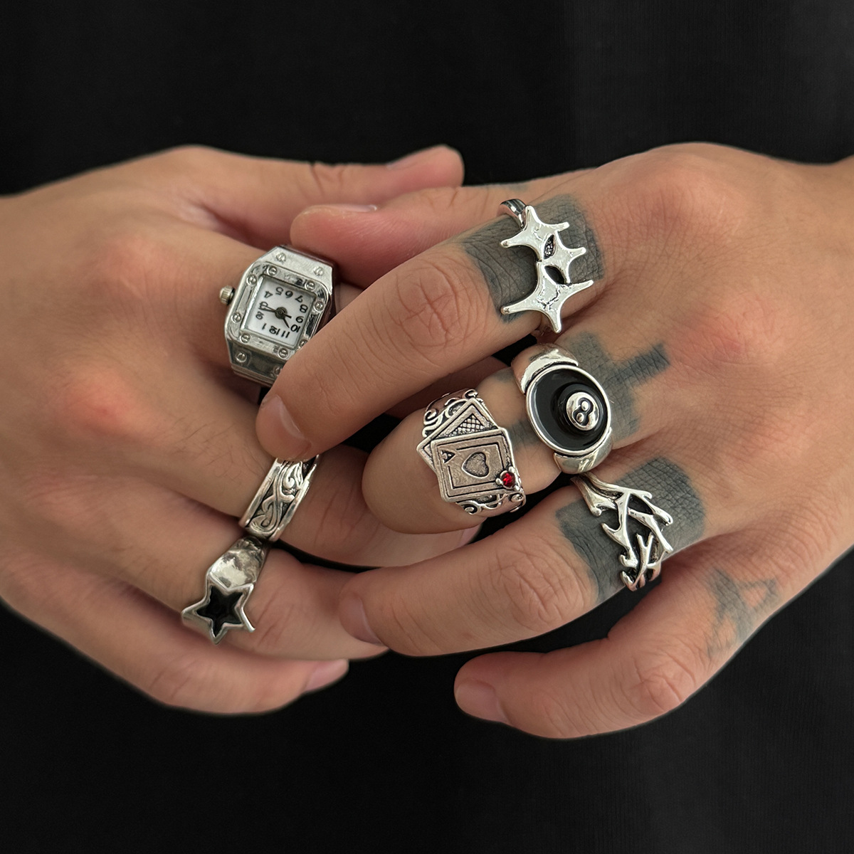 欧美小众个性手表戒指男嘻哈复古五角星扑克指环套装跨境男士手饰