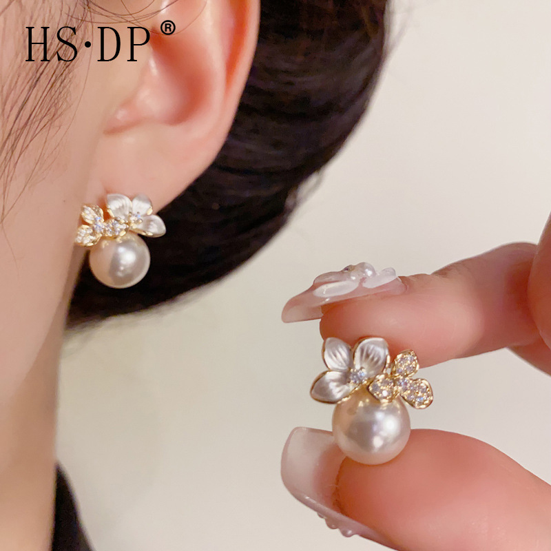 S925銀針の軽い贅沢な気質の白い漆の花の真珠のピアスの女性の大衆のファッションのデザイン感の百合のイヤリング