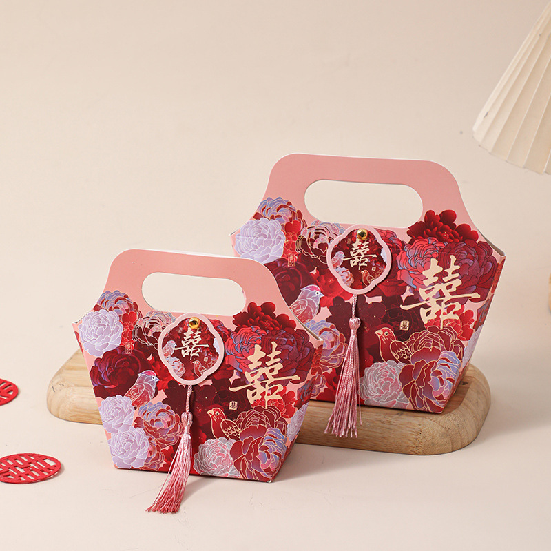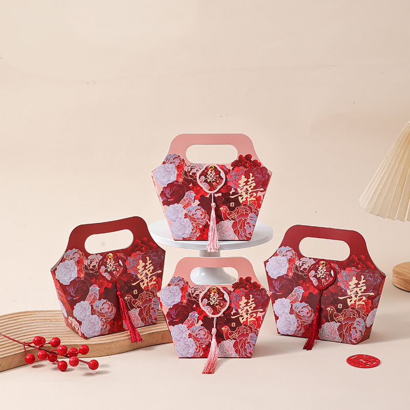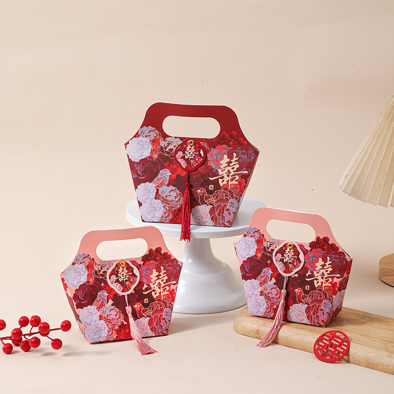 中国風新中国式結婚喜糖箱結婚祝いのプレゼントキャンディー箱高級感結婚式手提げ喜糖袋