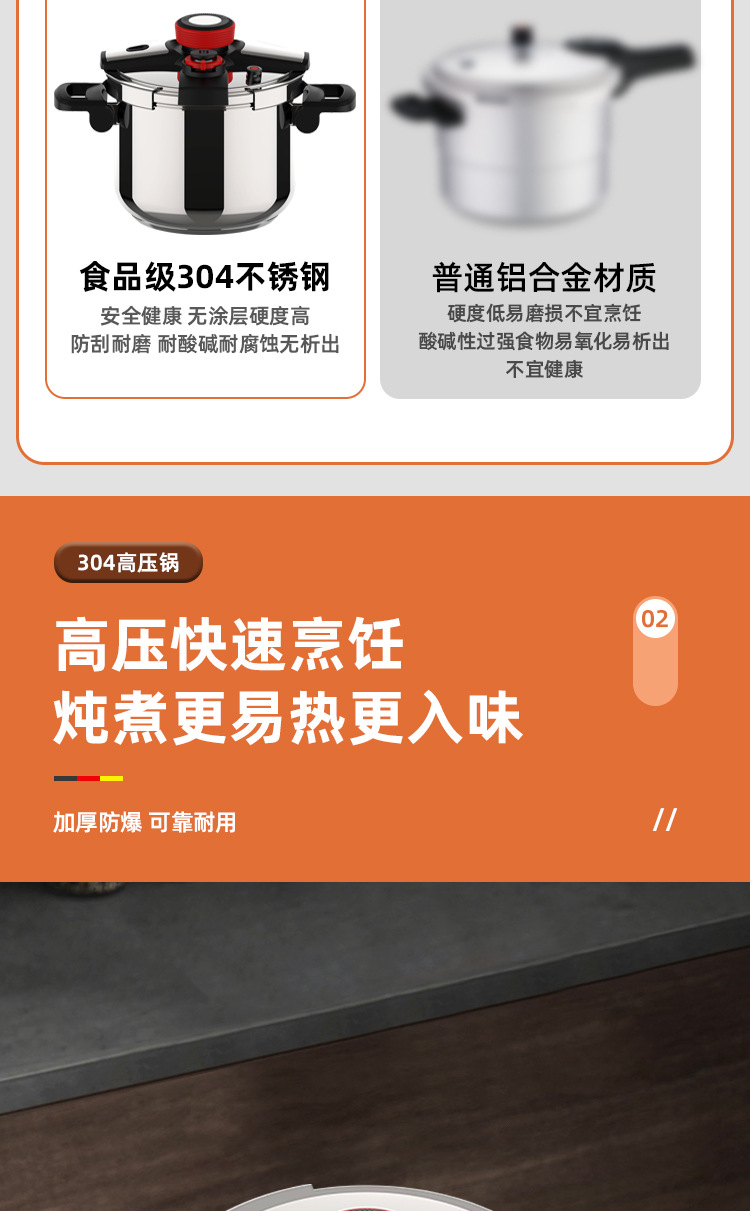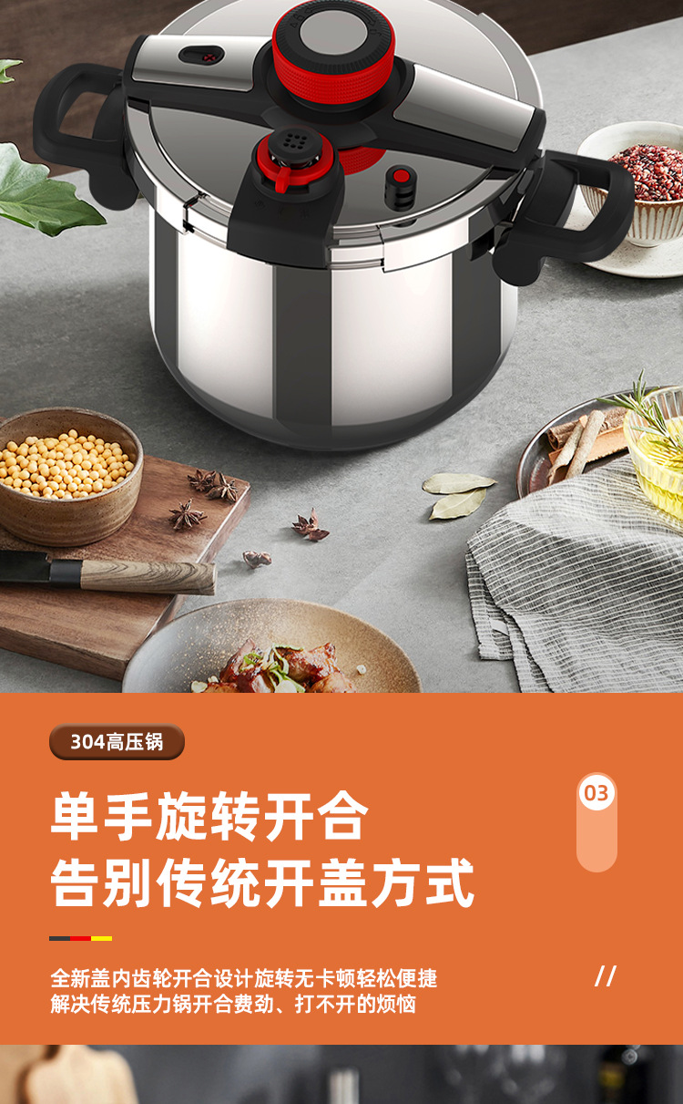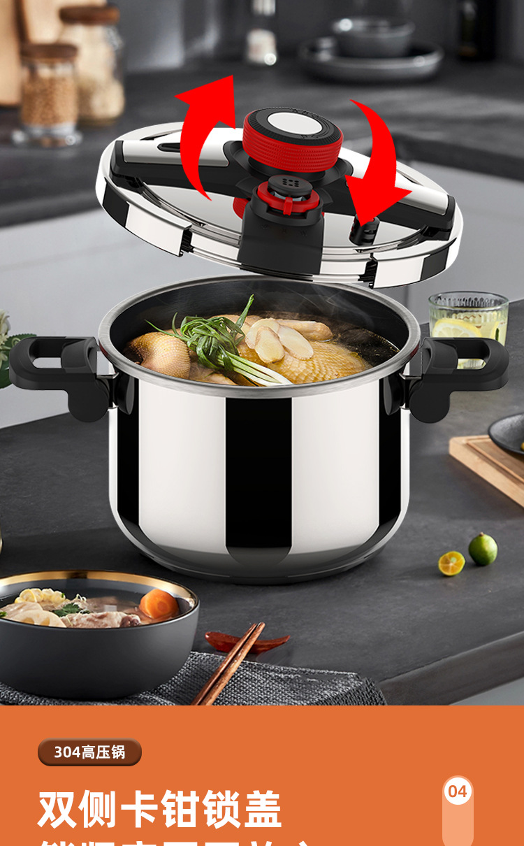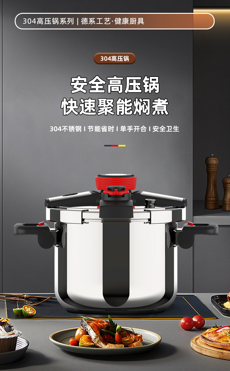 德国新款304不锈钢高压锅家用商用大容量防爆压力锅燃气电磁炉通