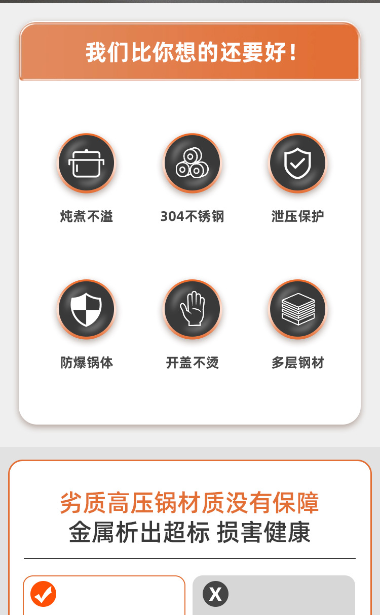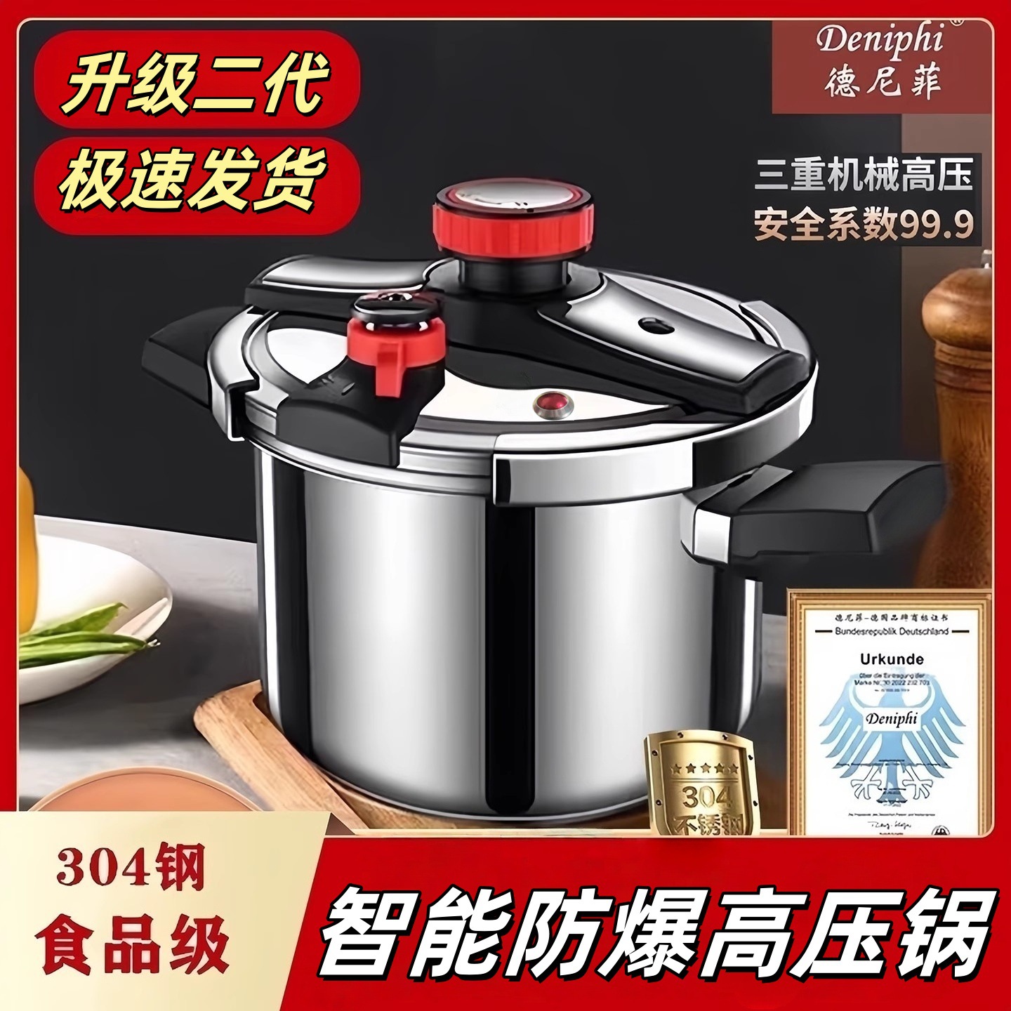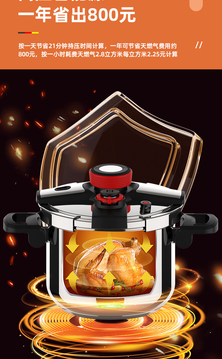 德国新款304不锈钢高压锅家用商用大容量防爆压力锅燃气电磁炉通