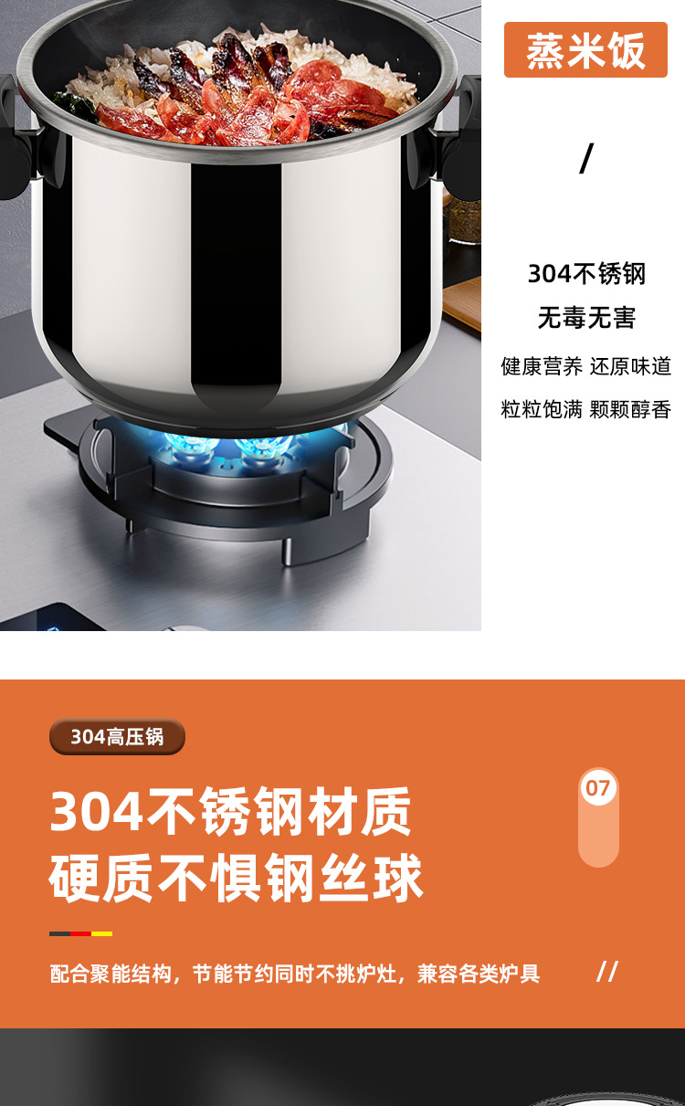 新しい 304 ステンレス鋼圧力鍋家庭用多機能厚みのある防爆大容量ガスストーブ電磁調理器に適しています