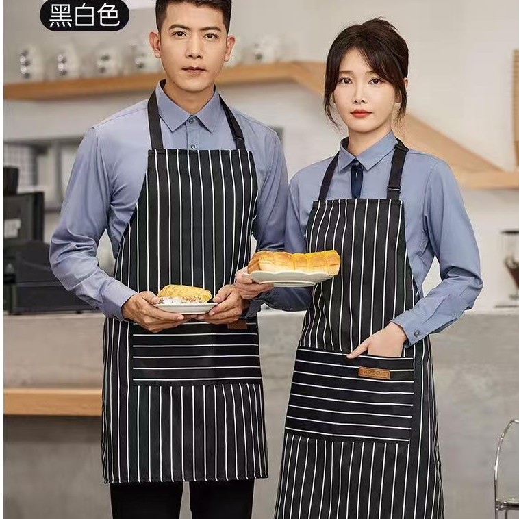 メーカー直販クロスボーダーアマゾン首掛けストライプポリエステルエプロンレストラン園芸カフェ作業服印logo