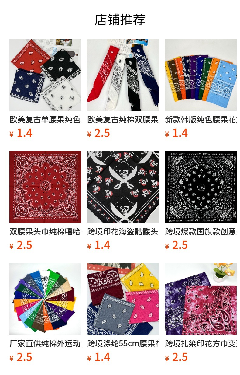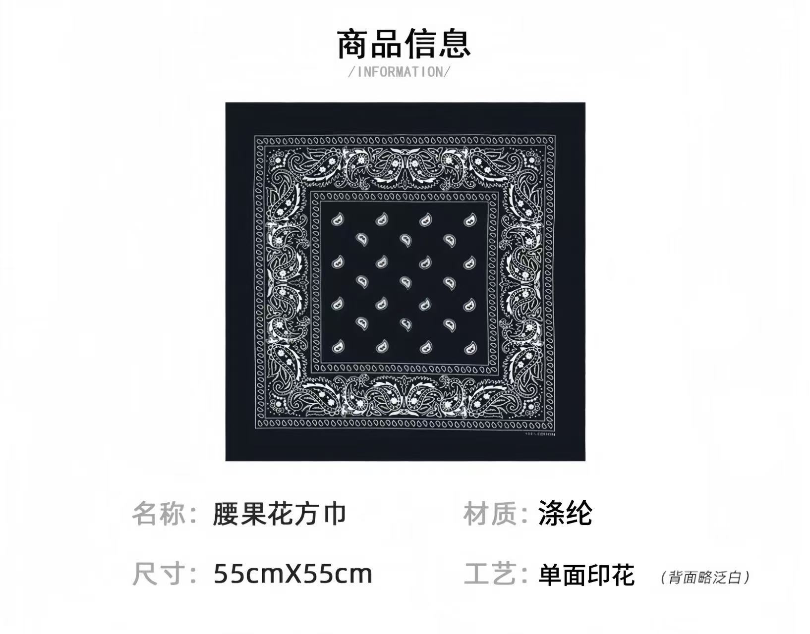 跨境涤纶佩斯利腰果花方巾嘻哈户外骑行头巾瓜子花欧美百变手帕