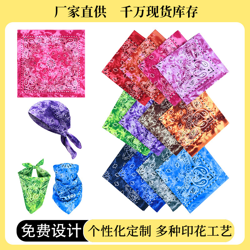 厂家直供跨境扎染涤纶腰果花方巾西海岸嘻哈户外运动hiphop头巾