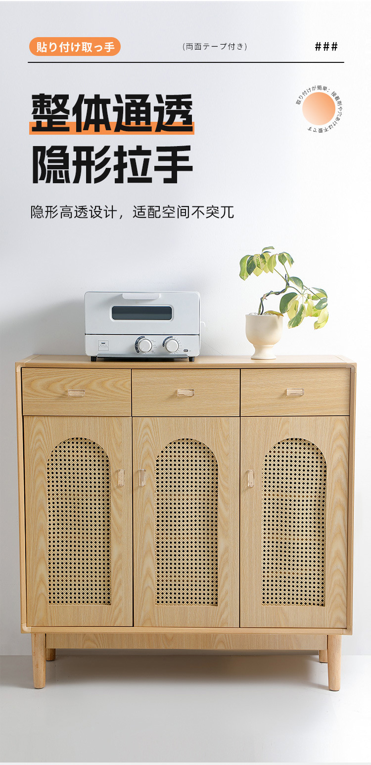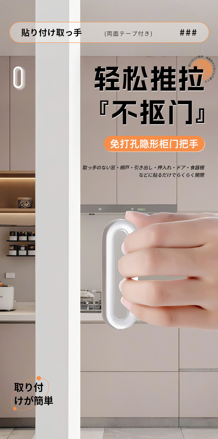 見えないキャビネットのドアの取っ手は穴を開けないで貼り付けます。