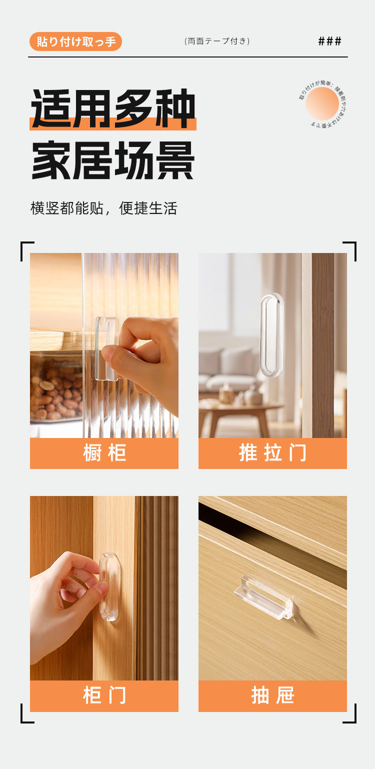 障子取っ手穴なしガラス扉貼り付け取っ手窓取っ手透明見えない障子キャビネット取っ手