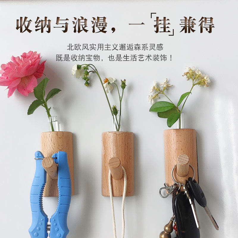 实木创意插花器冰箱贴磁铁装饰摆件立体养花试管小花瓶无痕磁性贴
