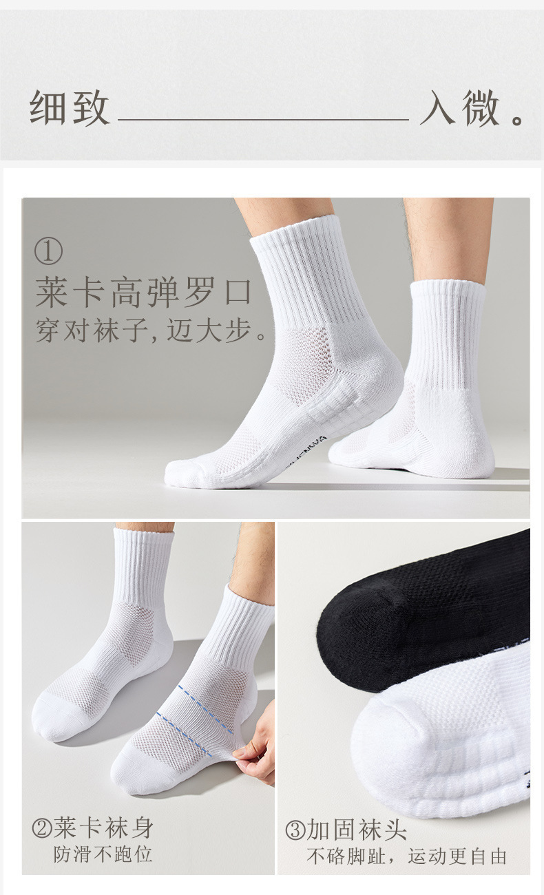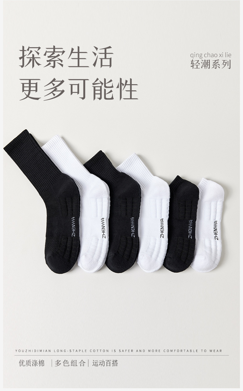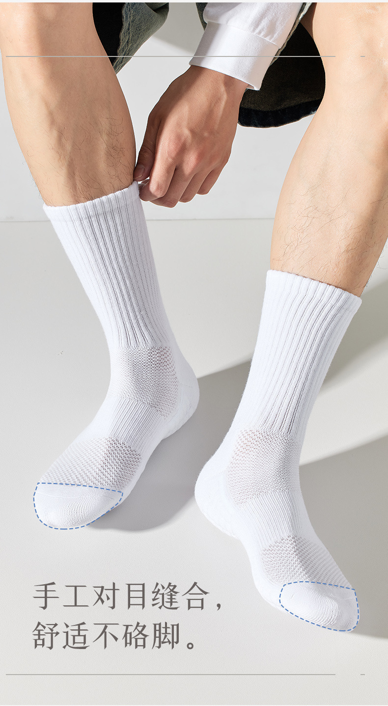 靴下メンズミッドレングスアメリカンハイトップバスケットボールソックススポーツランニングタオル底厚みのある無地黒と白のカップル綿の靴下