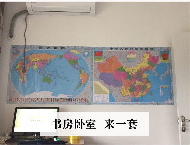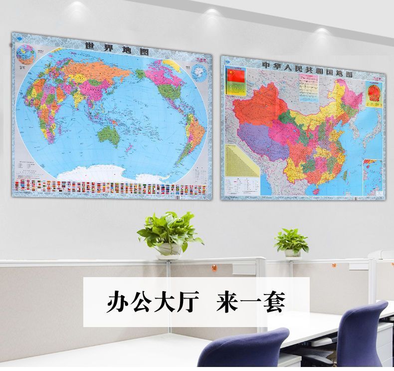 中国地図2024新版と世界地図マップ大サイズ中学校の小学生のオフィス壁に絵を貼る
