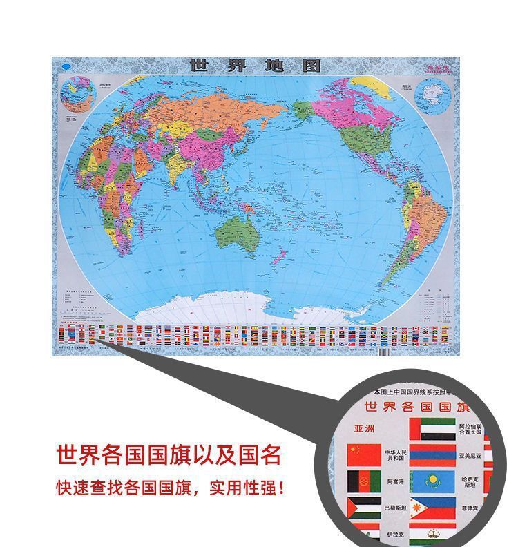 中国世界地図 学生用教材地図 家庭用壁掛け装飾地図 ラミネート加工地図