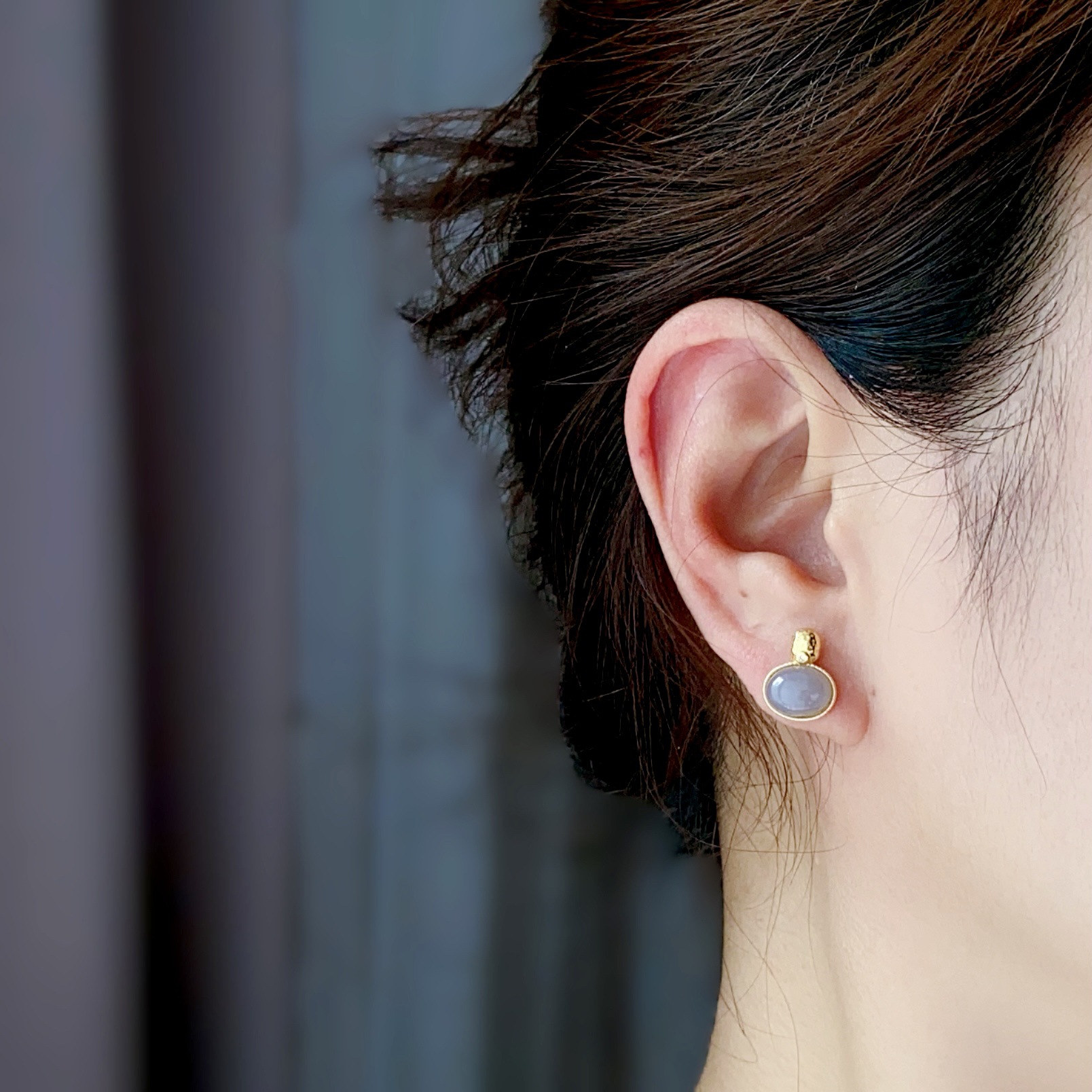 商品名 ホータン翡翠煙紫卵面横模様イヤリング S925 シルバー