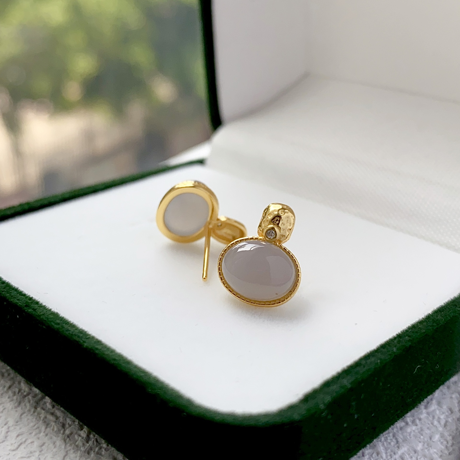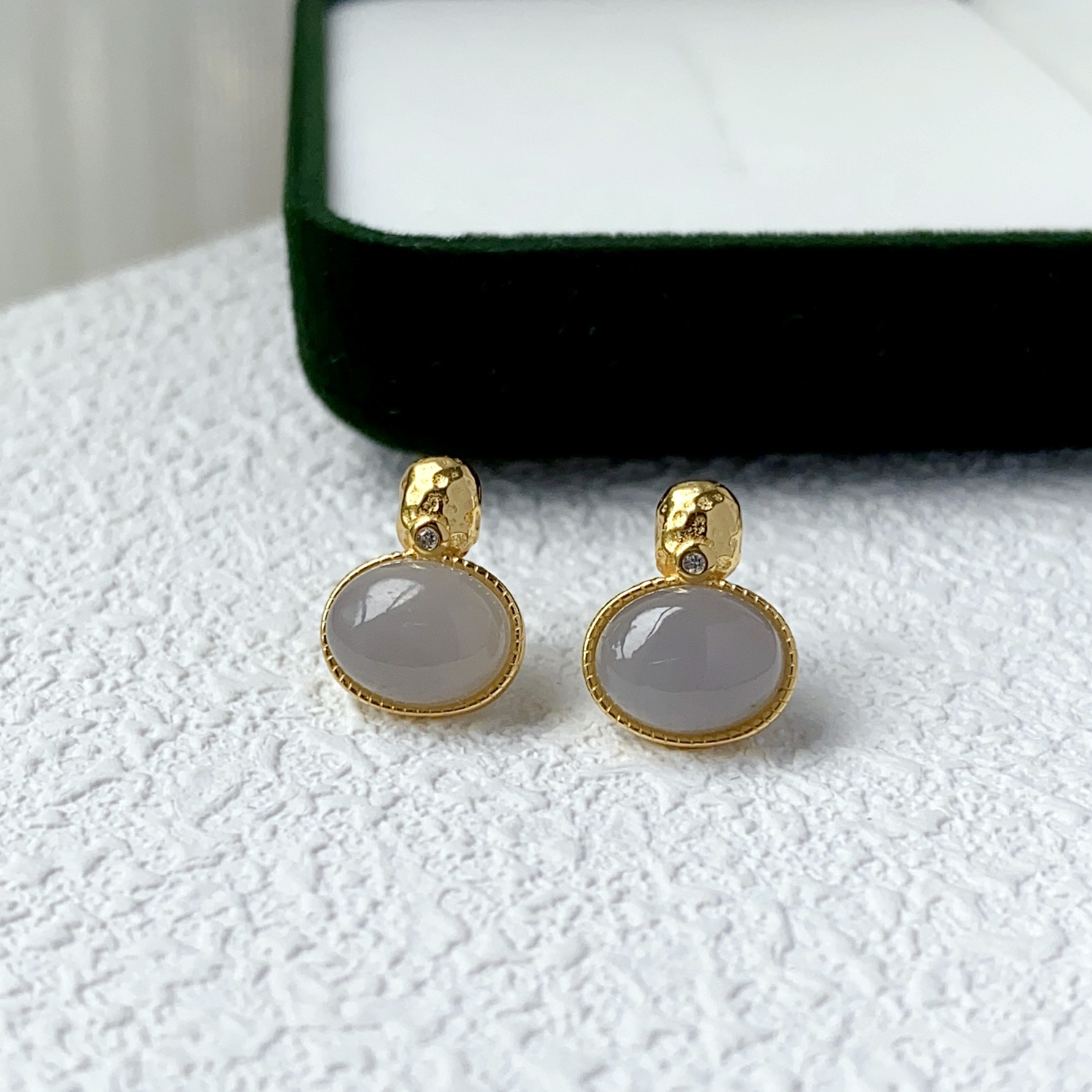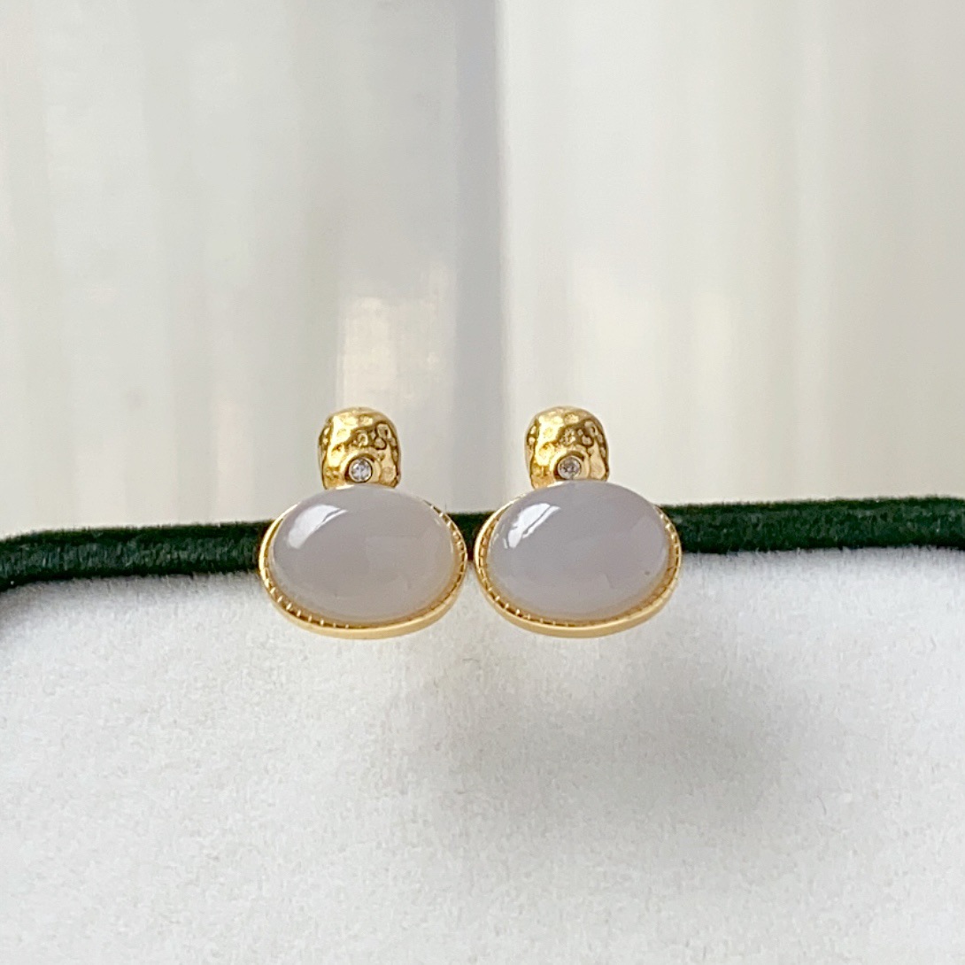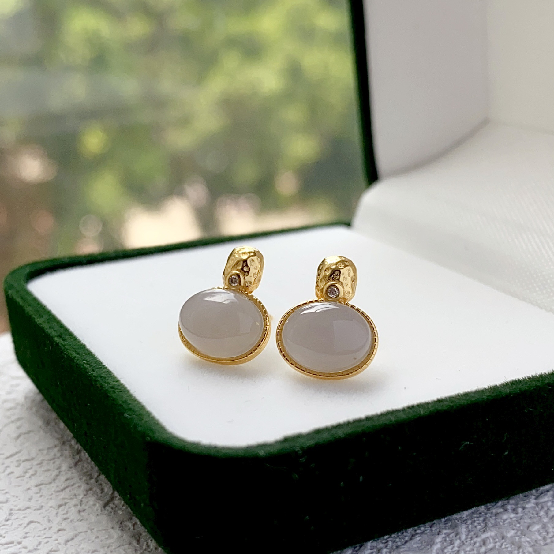 嘉灏天然和田碧玉白玉方牌镶S925银镀金简约耳挂厂家批发直播供货